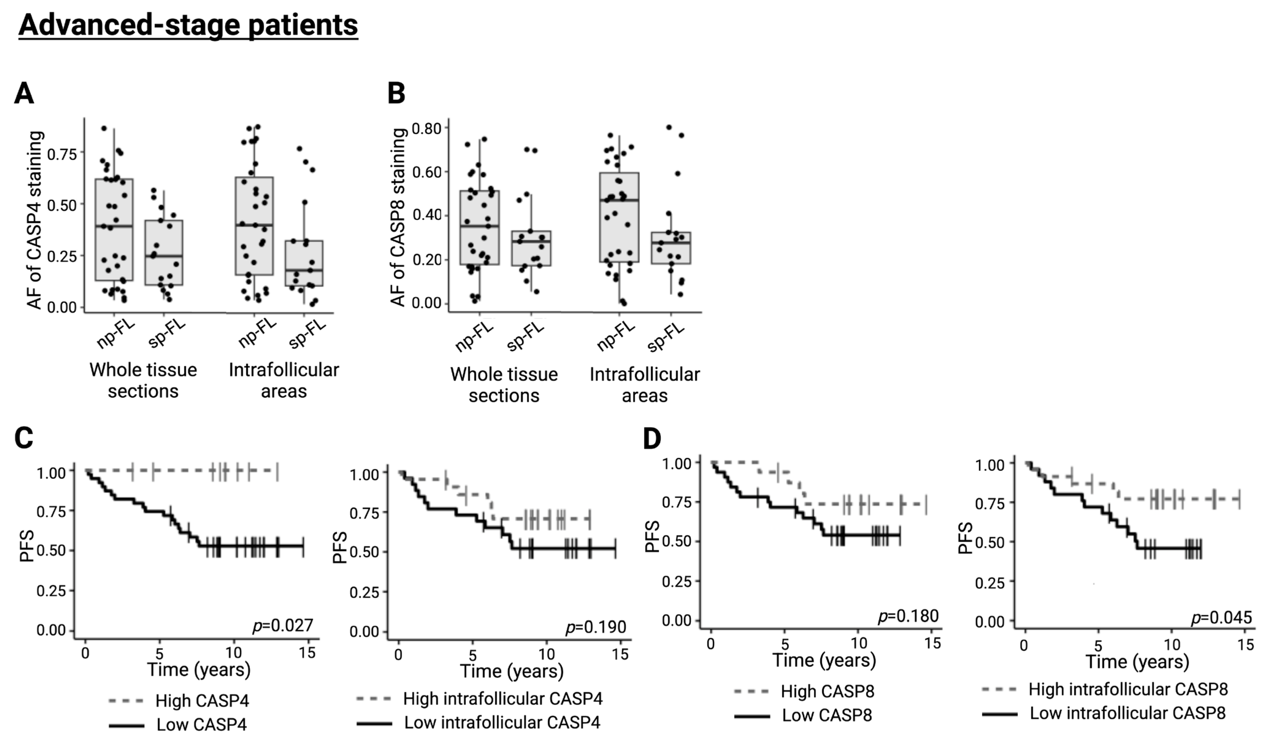 2.5. CASP4 and CASP8 Trend Towards an Implication in Disease Progression in Advanced-Stage FL