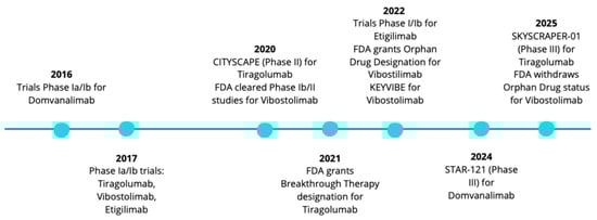 Timeline of clinical development of anti-TIGIT antibodies [,,,].