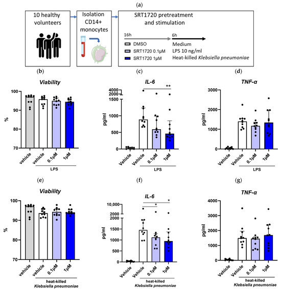 2.2. The Sirt1 Activator SRT1720 Inhibits LPS and K. Pneumoniae-Induced Monocyte Activation
