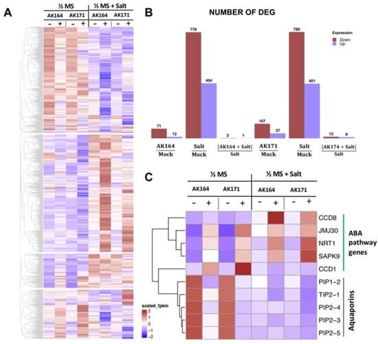 - Boursiac, Y.; Chen, S.; Luu, D.T.; Sorieul, M.; van den Dries, N.; Maurel, C. Early effects of salinity on water transport in Arabidopsis roots. Molecular and cellular features of aquaporin expression. Plant Physiol. 2005, 139, 790–805. [Google Scholar] [CrossRef]
