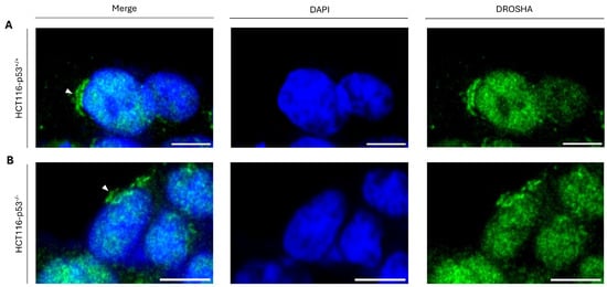 2.5. Cytoplasmic Accumulation of DROSHA Does Not Require the p53 Protein in Colon Cancer Cells