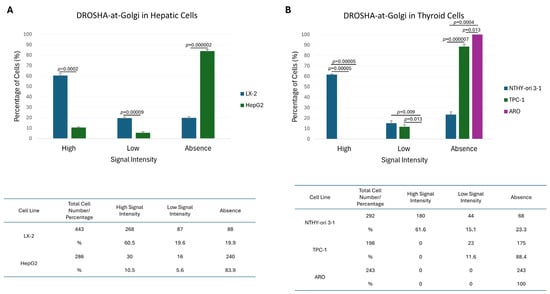 2.8. Immunophenotypic Variations of Golgi Apparatus-Containing DROSHA Protein in Human Immortalized Cells