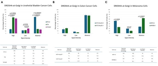 2.4. Formation of “DROSHA-Bodies” in the Cytoplasm of Human Urothelial Bladder Cancer Cells: A Phenotypic Universality Unmasking