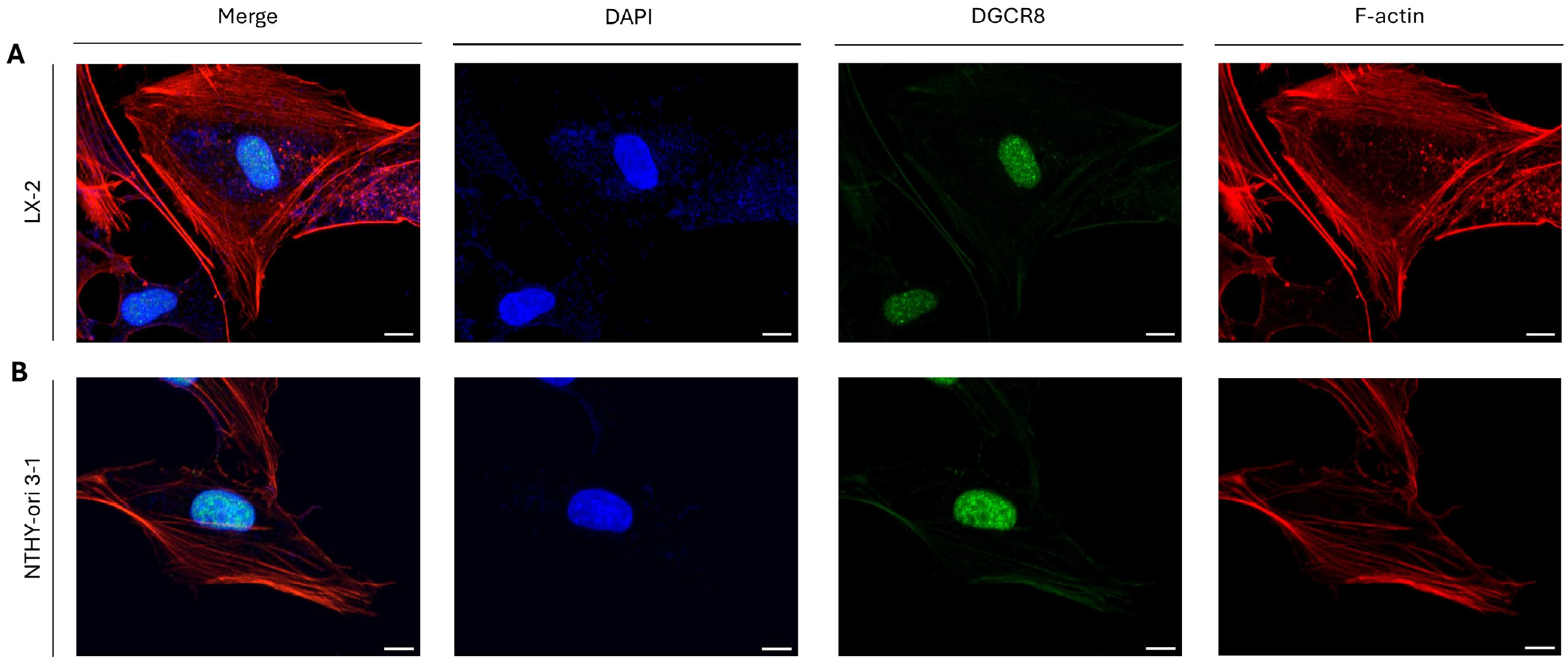 2.3. DROSHA Compartmentalization in the Cytoplasm of Liver and Thyroid Cancer Cells During Interphase