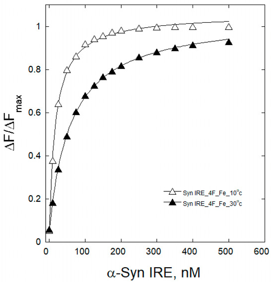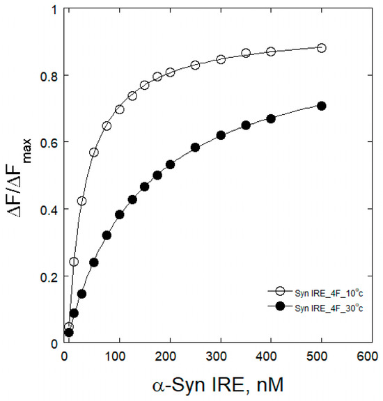 Fe2+-dependent binding plots for α-Syn IRE and eIF4F at variable temperatures. Fe2+ concentration was 50 μM.