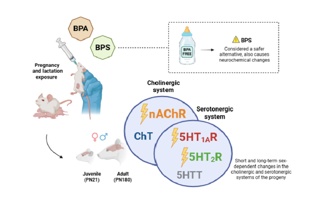 Semeão, K.A.; Dutra-Tavares, A.C.; Ribeiro-Carvalho, A.; Isnardo-Fernandes, J.; Lopes, L.D.; Souza, G.S.M.; Nunes-Freitas, A.L.; Silva, B.S.; Filgueiras, C.C.; Manhães, A.C.; et al. Serotonergic and Cholinergic Imbalance in the Offspring of Rats Exposed to Bisphenol A and Bisphenol S During Pregnancy and Lactation: Short- and Long-Term Effects. Int. J. Mol. Sci. 2025, 26, 9329. https://doi.org/10.3390/ijms26199329