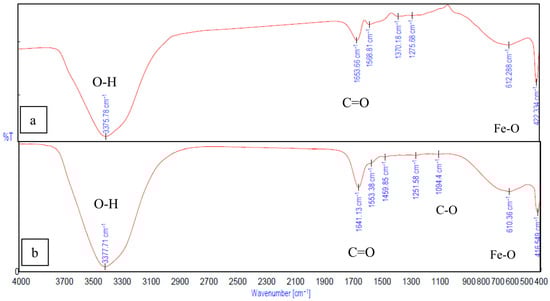 FTIR spectrum of (a) SA-Fe3O4 nanoparticle, (b) Gel-Fe3O4 nanoparticle.