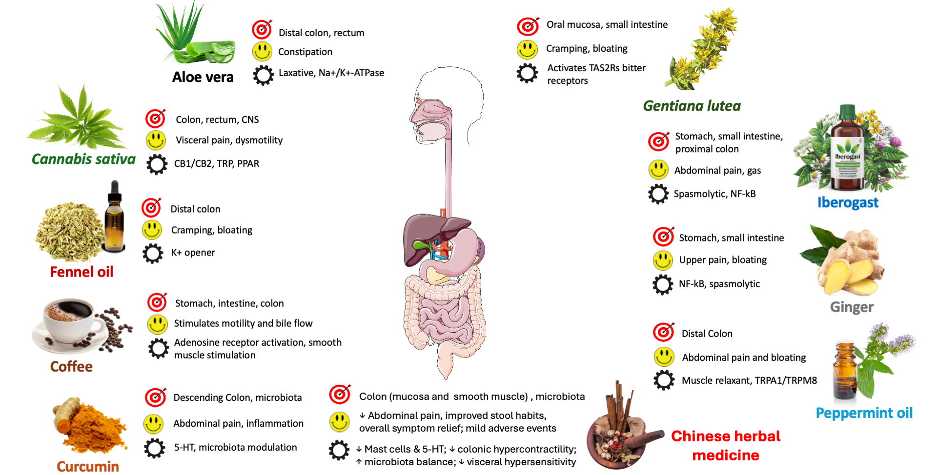 Abalo, R.; Gallego-Barceló, P.; Gabbia, D. Natural Remedies for Irritable Bowel Syndrome: A Comprehensive Review of Herbal-Based Therapies. Int. J. Mol. Sci. 2025, 26, 9345. https://doi.org/10.3390/ijms26199345