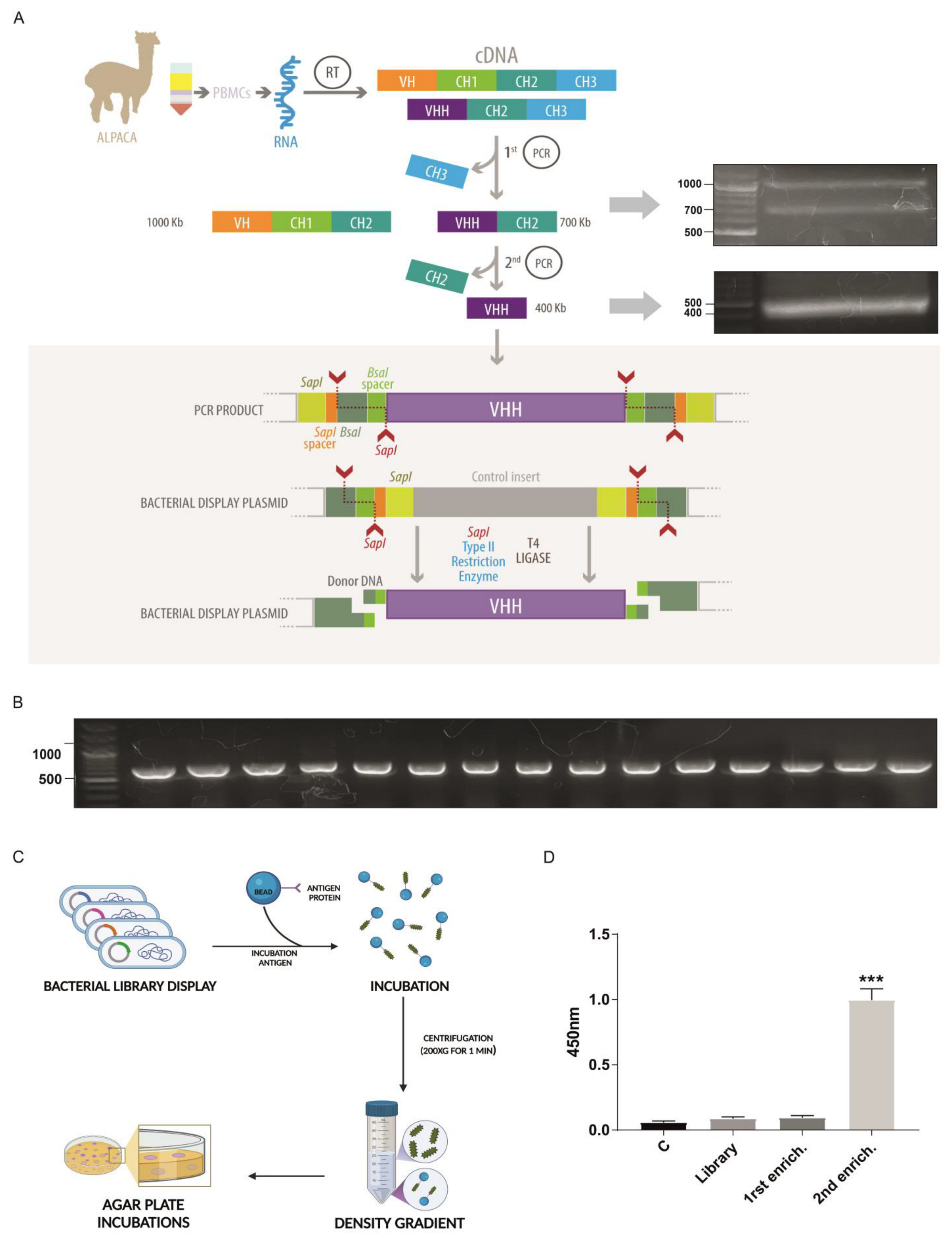 Chicago/Turabian StylePino-Belmar, Camila, Johanna Himelreichs, Camila Deride, Tamara Matute, Isaac Nuñez, Severine Cazaux, Fernan Federici, Karen Moreno-Mendieta, Genaro Soto-Rauch, Joaquín Castro, and et al. 2025. "Novel Type IIS-Based Library Assembly Technique for Developing Nanobodies Targeting IPNv VP2 Protein" International Journal of Molecular Sciences 26, no. 19: 9350. https://doi.org/10.3390/ijms26199350