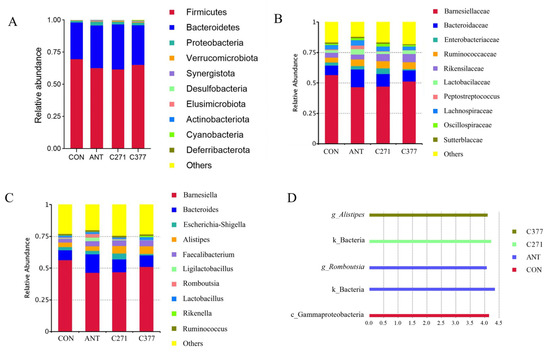49]. Supplementation with C271 and C377 increased the relative abundance of Bacteroidetes. Multiple species of this phylum contribute to intestinal nutrient metabolism and are capable of fermenting carbohydrates to produce short-chain fatty acids [