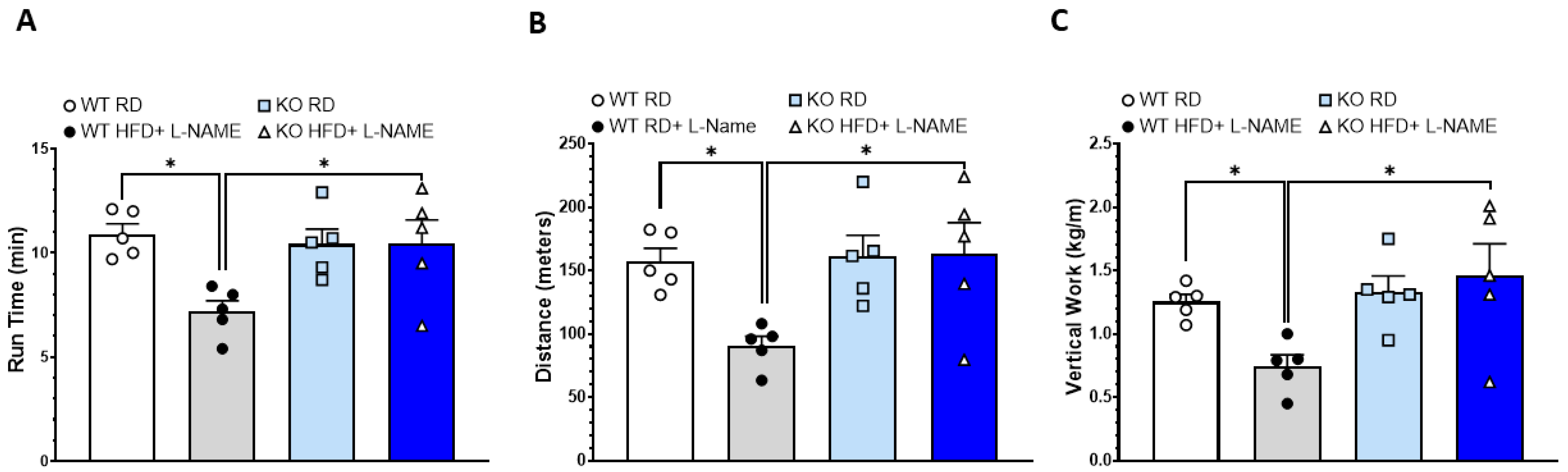 2.6. Reduced Exercise Capacity in WT but Not TRPC6 KO Mice After HFD+L-NAME