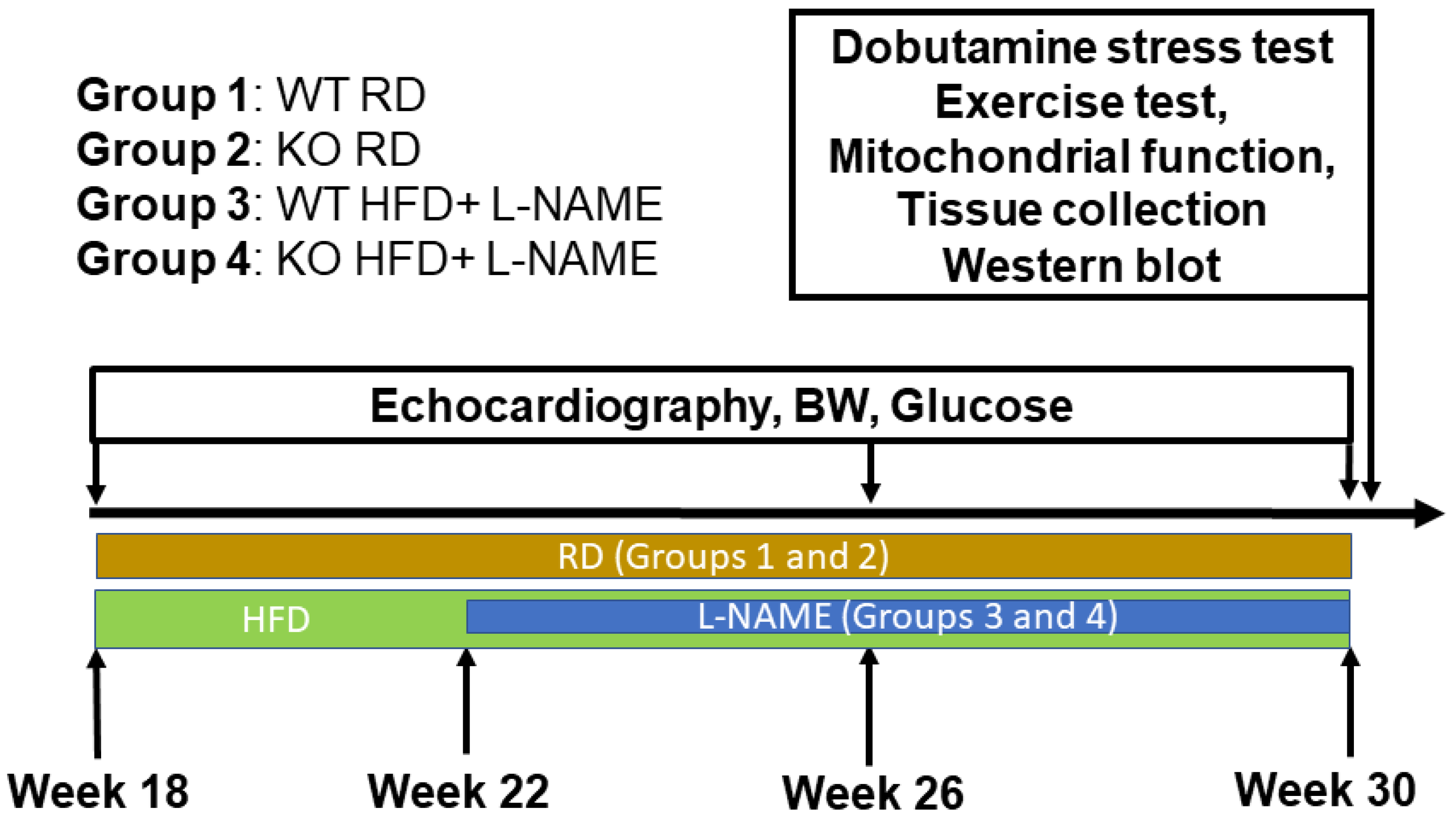 - Matsiukevich, D.; Kovacs, A.; Li, T.; Kokkonen-Simon, K.; Matkovich, S.J.; Oladipupo, S.S.; Ornitz, D.M. Characterization of a robust mouse model of heart failure with preserved ejection fraction. Am. J. Physiol. Heart Circ. Physiol. 2023, 325, H203–H231. [Google Scholar] [CrossRef]