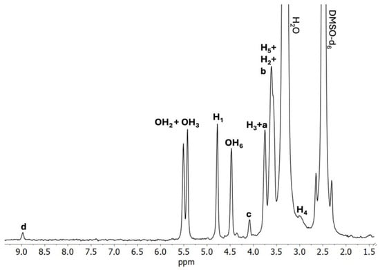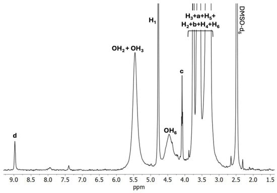 As it was previously described by Lizy Roselet and Prema Kumari, 1H NMR may be a valuable tool in the determination of intermolecular interactions between CDs and pharmacologically active substances forming supramolecular complexes []. As 1H NMR offers the possibility to establish the geometric orientation of the guest molecules in the CD cavity, based on the chemical shift changes () of the hydrogen atoms located on the outer surface of CD (H1, H2, H4) and/or hydrogen atoms located within the CD cavity (H3, H5) (Figure 2), we have performed a thorough analysis of the BCNU-α-CD ICs’ spectra in order to determine in comparison to the spectra of pure BCNU (Figure S2) and α-CD (Figure 3). The results are presented in Table 2 and Table 3.