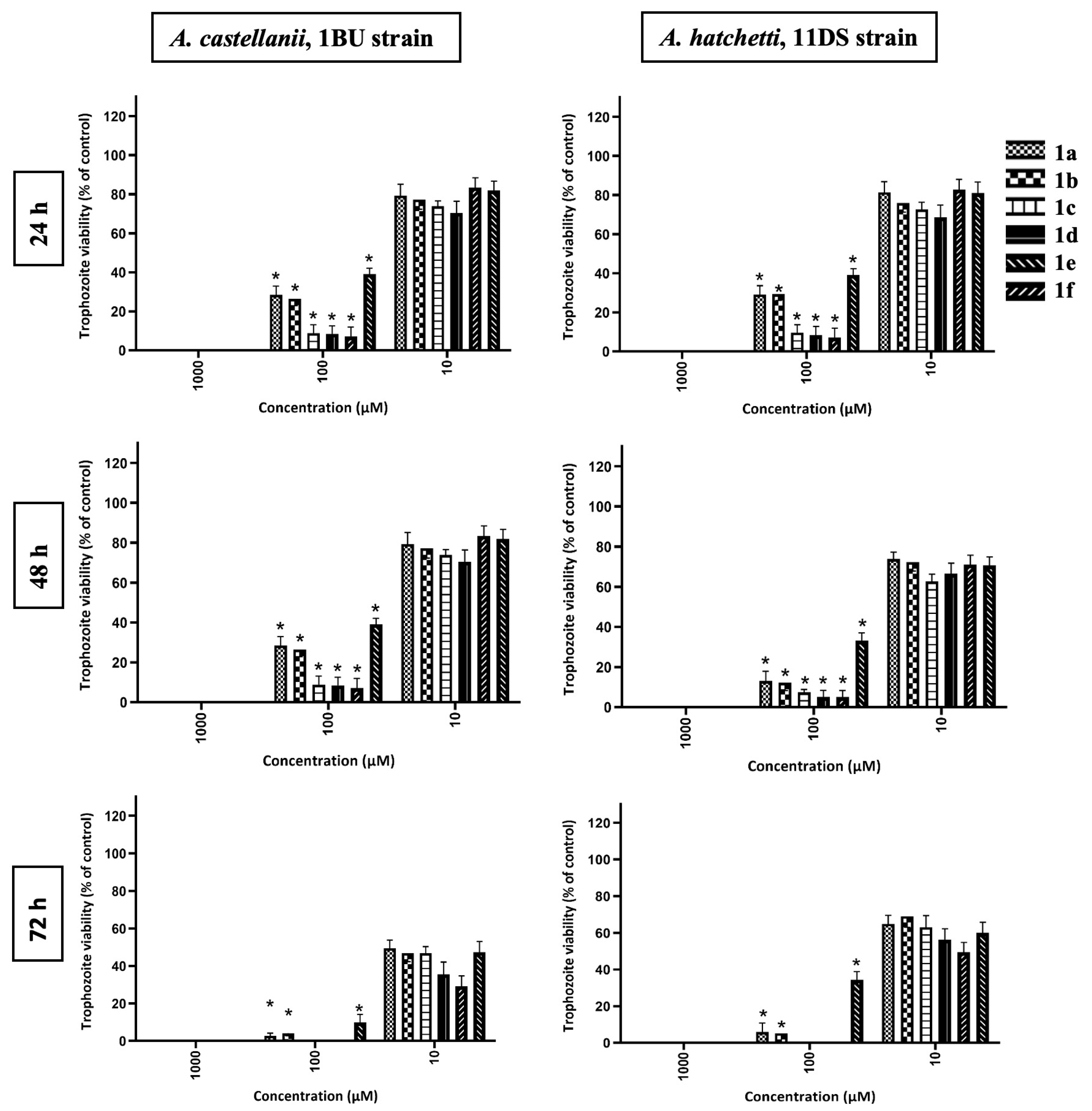 - Saeed, B.Q.; Hamdy, R.; Akbar, N.; Sajeevan, S.E.; Khan, N.A.; Soliman, S.S. Azole-based compounds as potential anti-Acanthamoeba agents. RSC Med. Chem. 2024, 15, 1578–1588. [Google Scholar] [CrossRef] [PubMed]