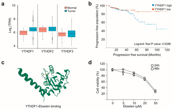 2.1. YTHDF1 Overexpression Predicts Poor Prognosis in Breast Cancer and Can Be Targeted with Ebselen