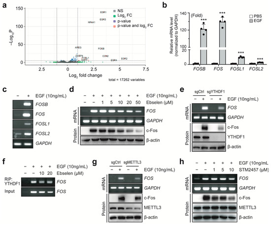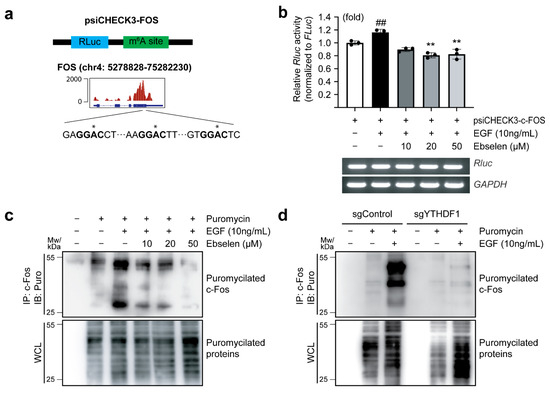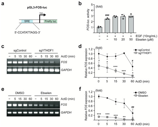 2.2. Ebselen Inhibits YTHDF1-Induced Elevation of c-Fos Expression