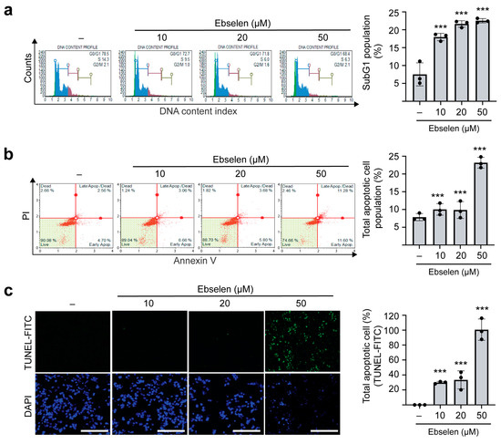 - Park, W.H. Ebselen Inhibits the Growth of Lung Cancer Cells via Cell Cycle Arrest and Cell Death Accompanied by Glutathione Depletion. Molecules 2023, 28, 6472. [Google Scholar] [CrossRef]