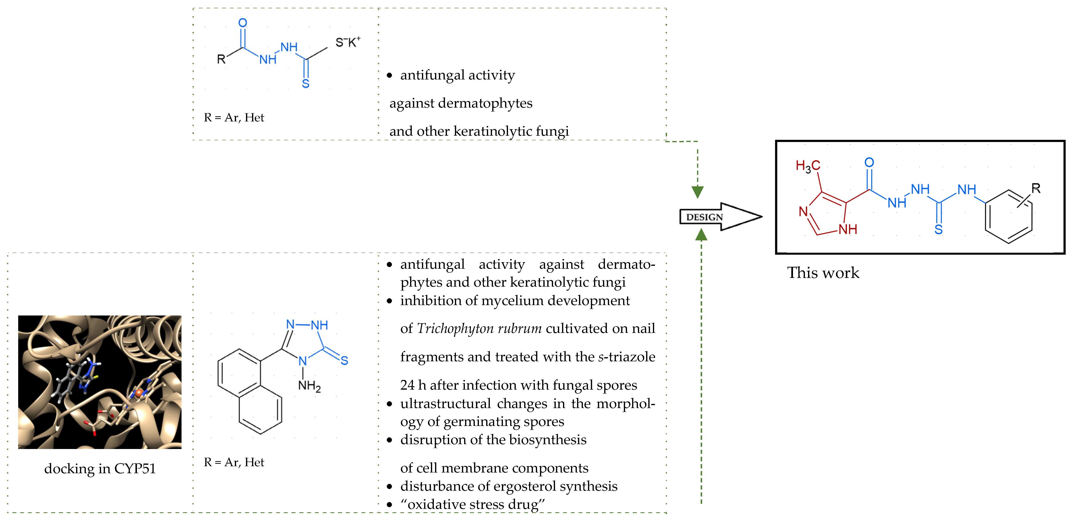 - Ciesielska, A.; Kowalczyk, A.; Paneth, A.; Stączek, P. Evaluation of the Antidermatophytic Activity of Potassium Salts of N-acylhydrazinecarbodithioates and Their Aminotriazole-thione Derivatives. Sci. Rep. 2024, 14, 3521. [Google Scholar] [CrossRef]