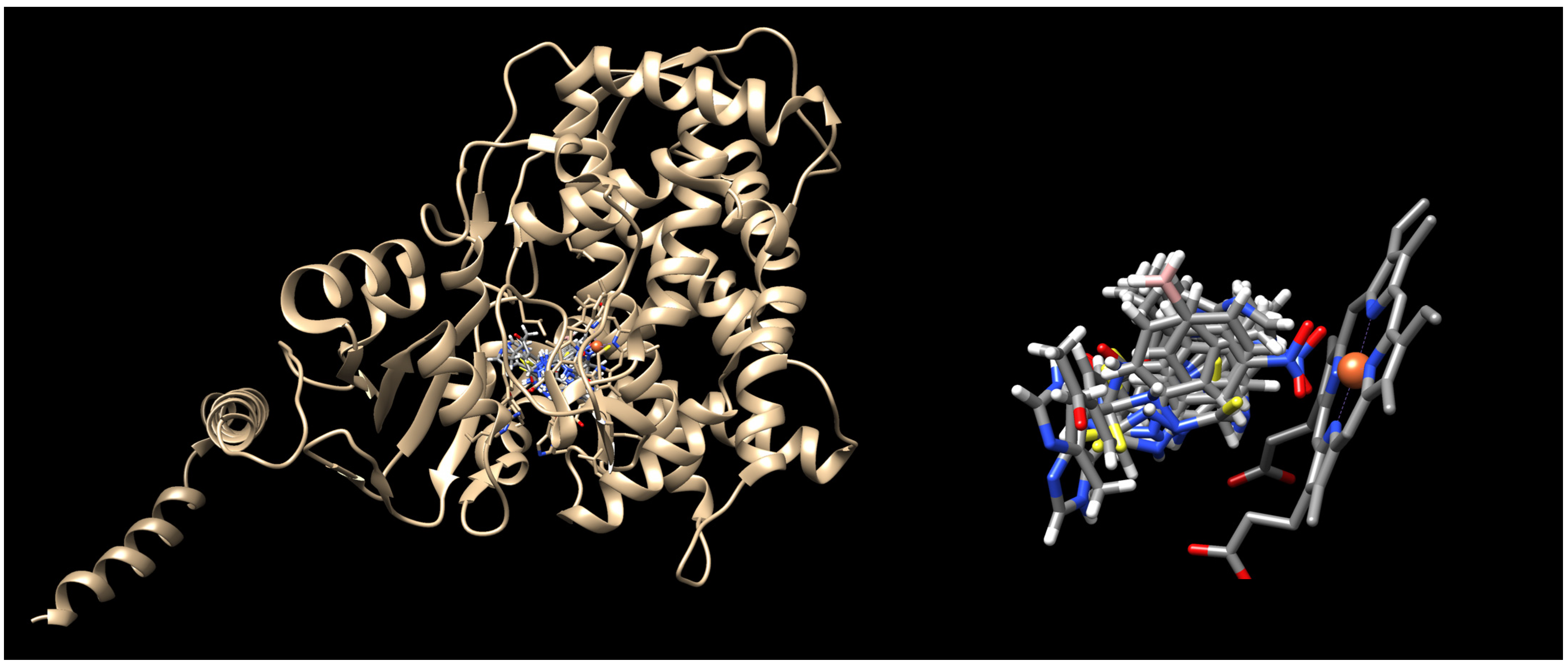 lanosterol−14-α demethylase | −32.1 | −33.5 | −28.7 | −33.8 | −33.8 | −38.2 | −30.2 | −29.0 | −33.0 | −27.5 |