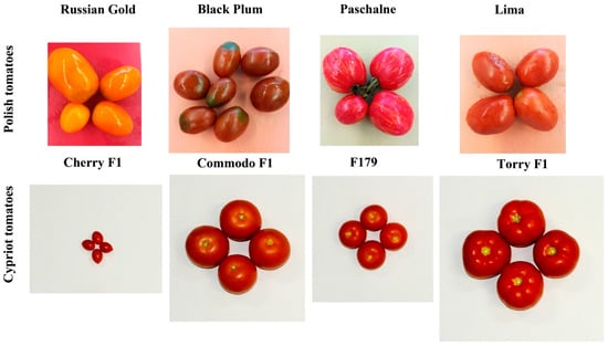 - Georgiadou, E.C.; Antoniou, C.; Majak, I.; Goulas, V.; Filippou, P.; Smolińska, B.; Leszczyńska, J.; Fotopoulos, V. Tissue-Specific Elucidation of Lycopene Metabolism in Commercial Tomato Fruit Cultivars during Ripening. Sci. Hortic. 2021, 284, 110144. [Google Scholar] [CrossRef]
