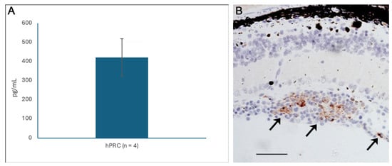 In addition, the expression by hRPCs of the pigment epithelium-derived factor (PEDF), reported previously [], was verified here both in culture using ELISA and in vivo following placement in the vitreous (Figure 6).