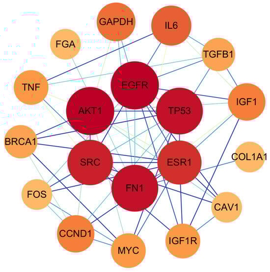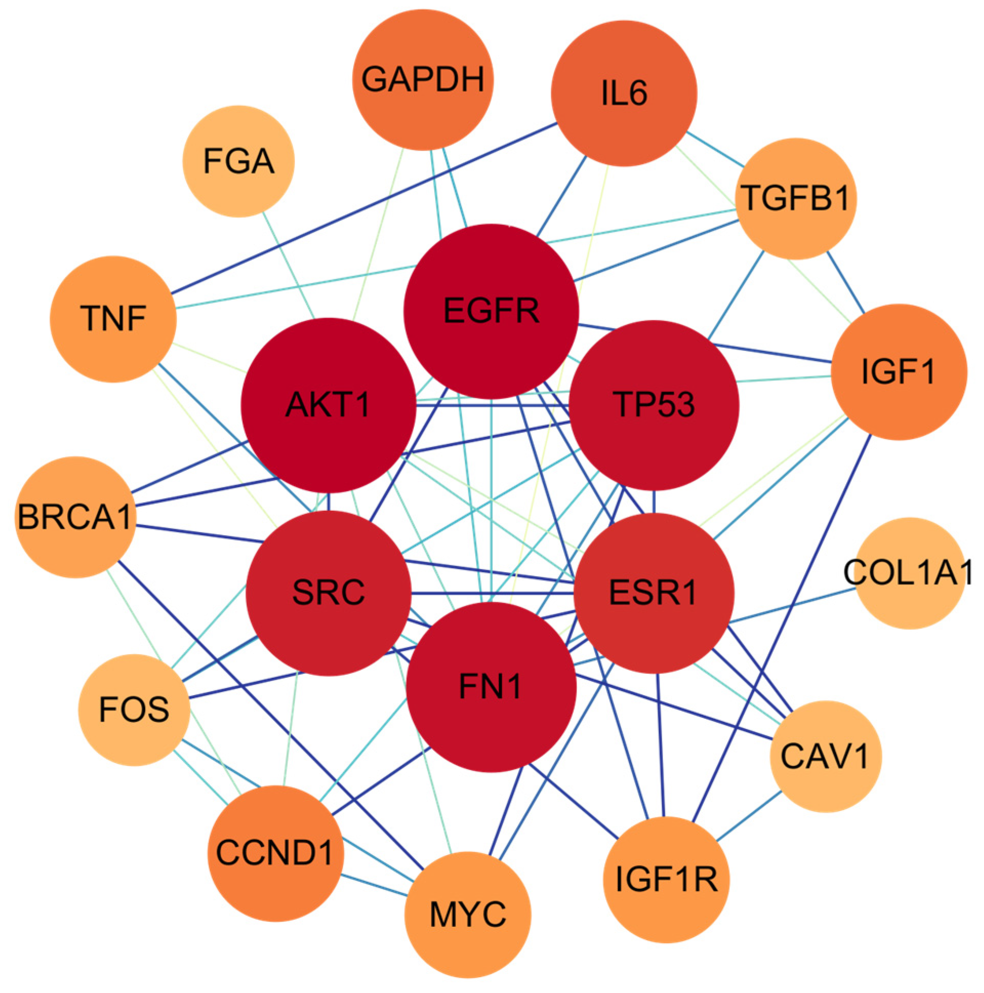 4.4. Protein–Protein Interaction (PPI) Network Construction