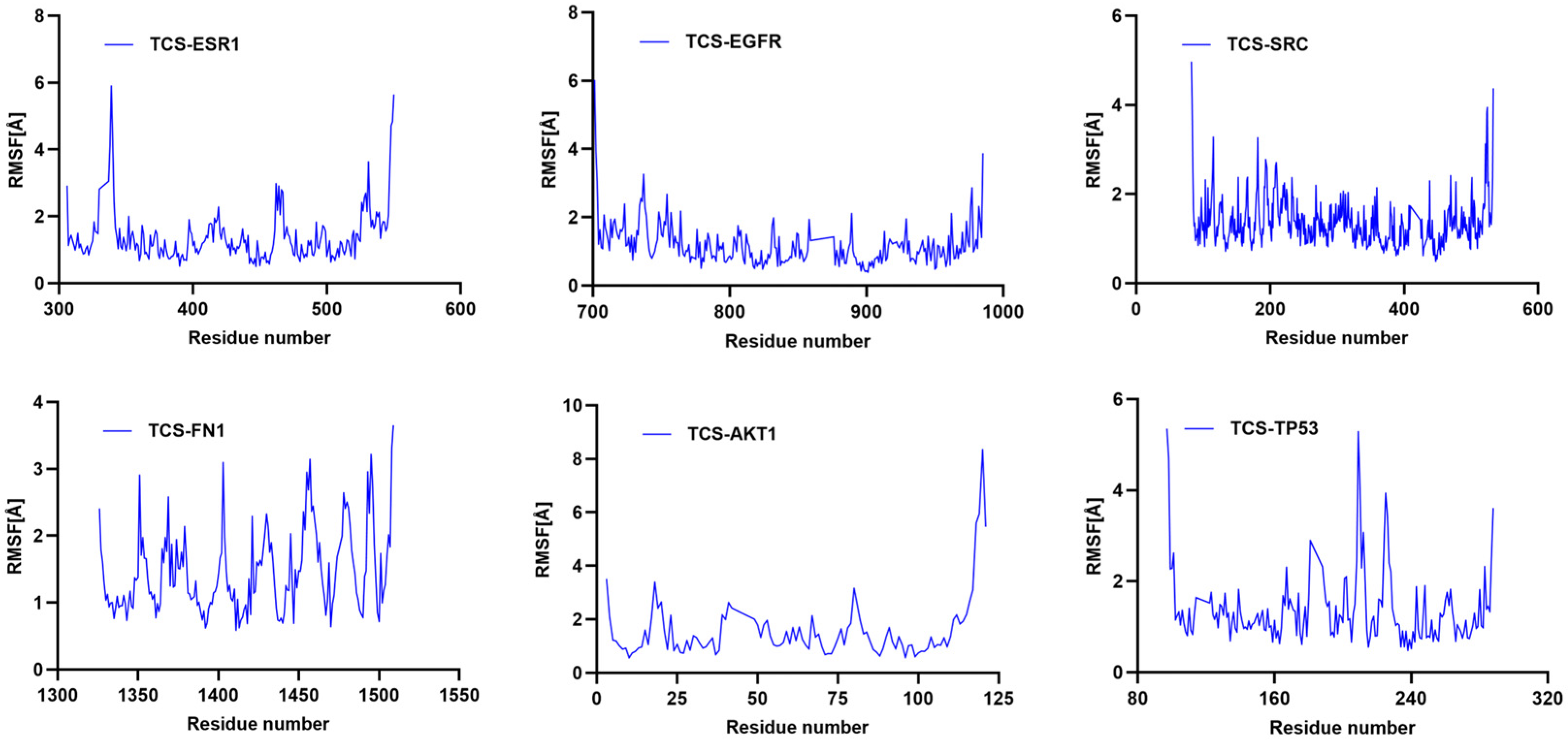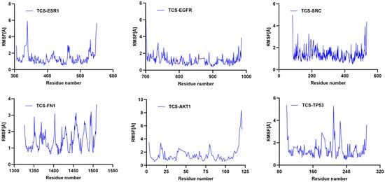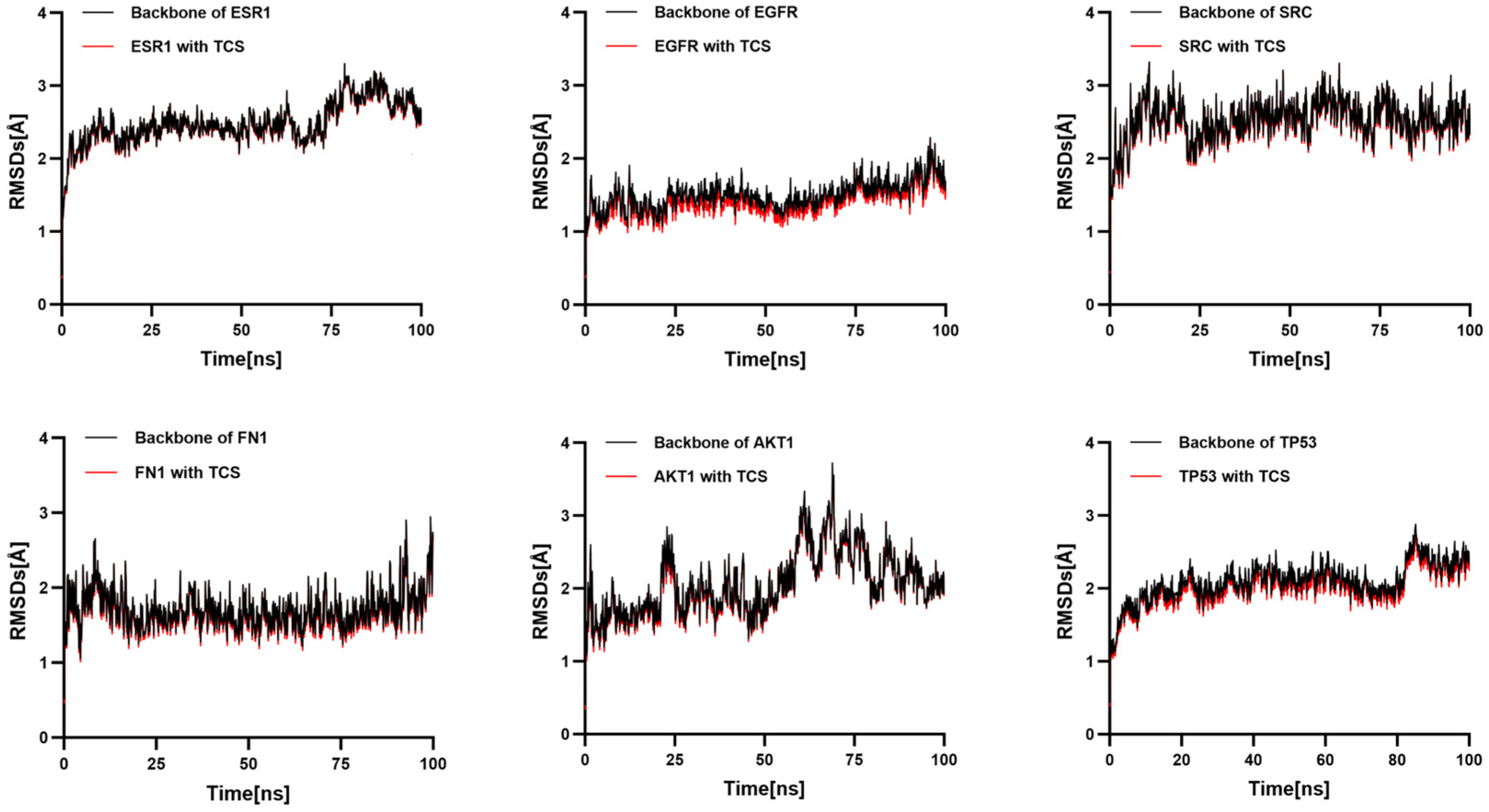 2.6. Molecular Dynamics Simulation of Core Target Proteins