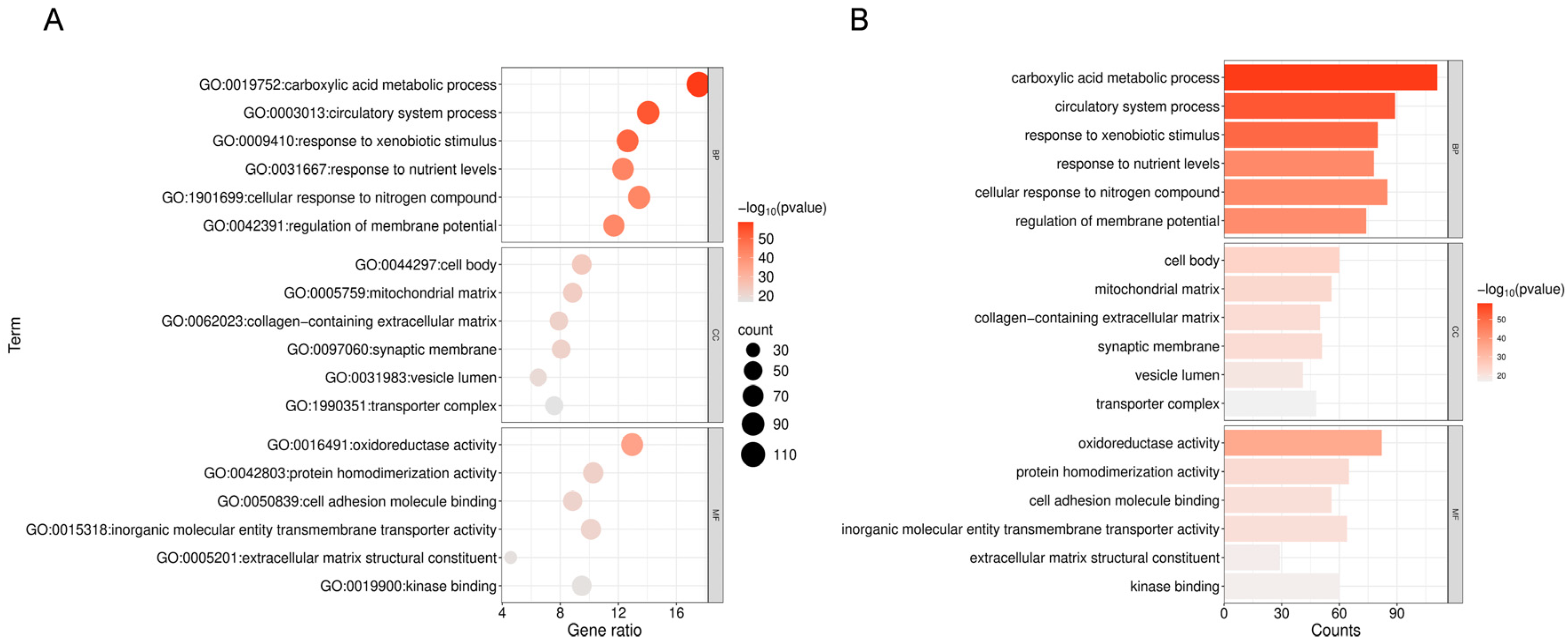 2.4. Enrichment Analyses for GO Terms and KEGG Pathways
