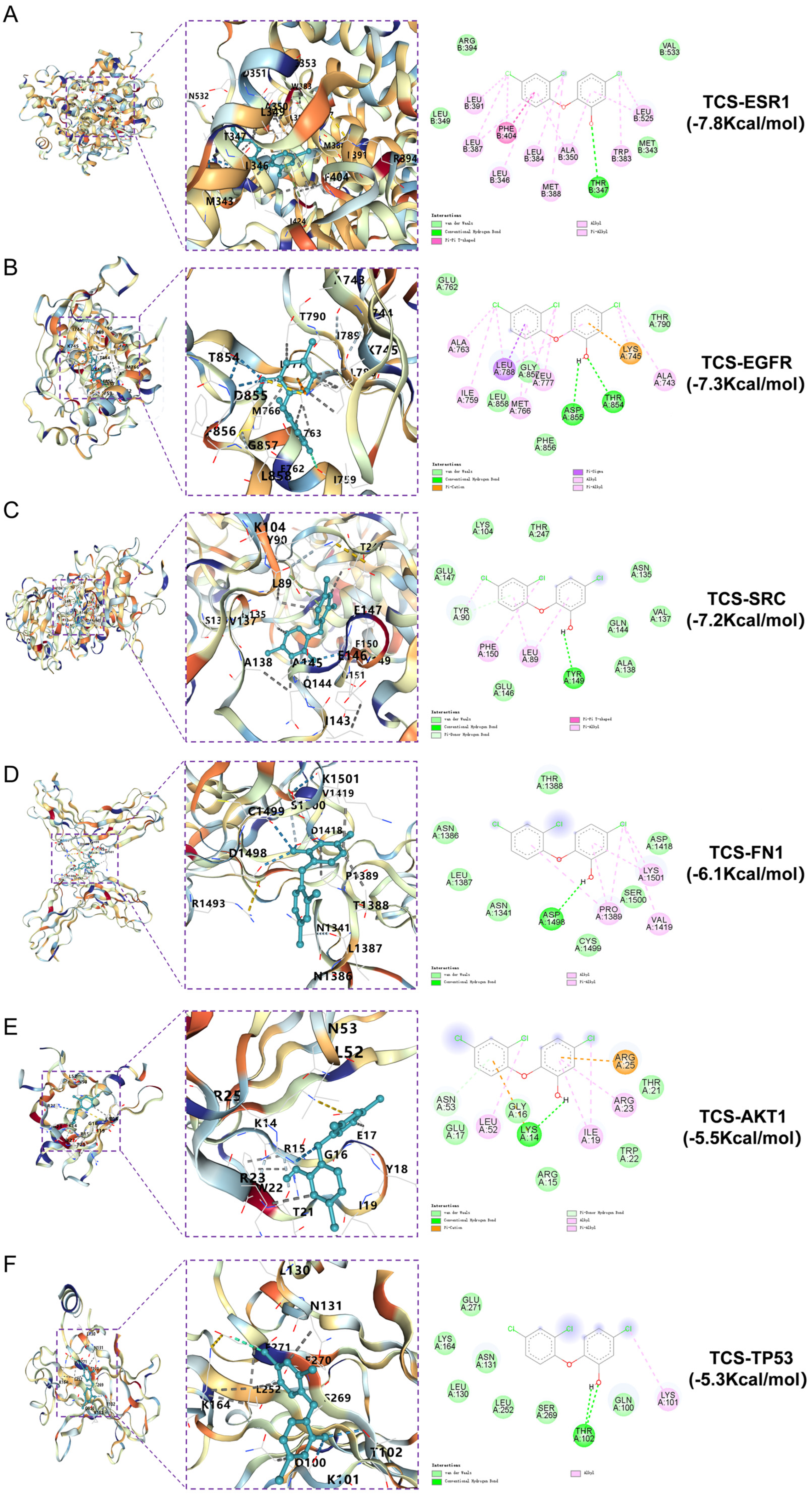 4.7. Molecular Docking of Triclosan with Core Target Proteins
