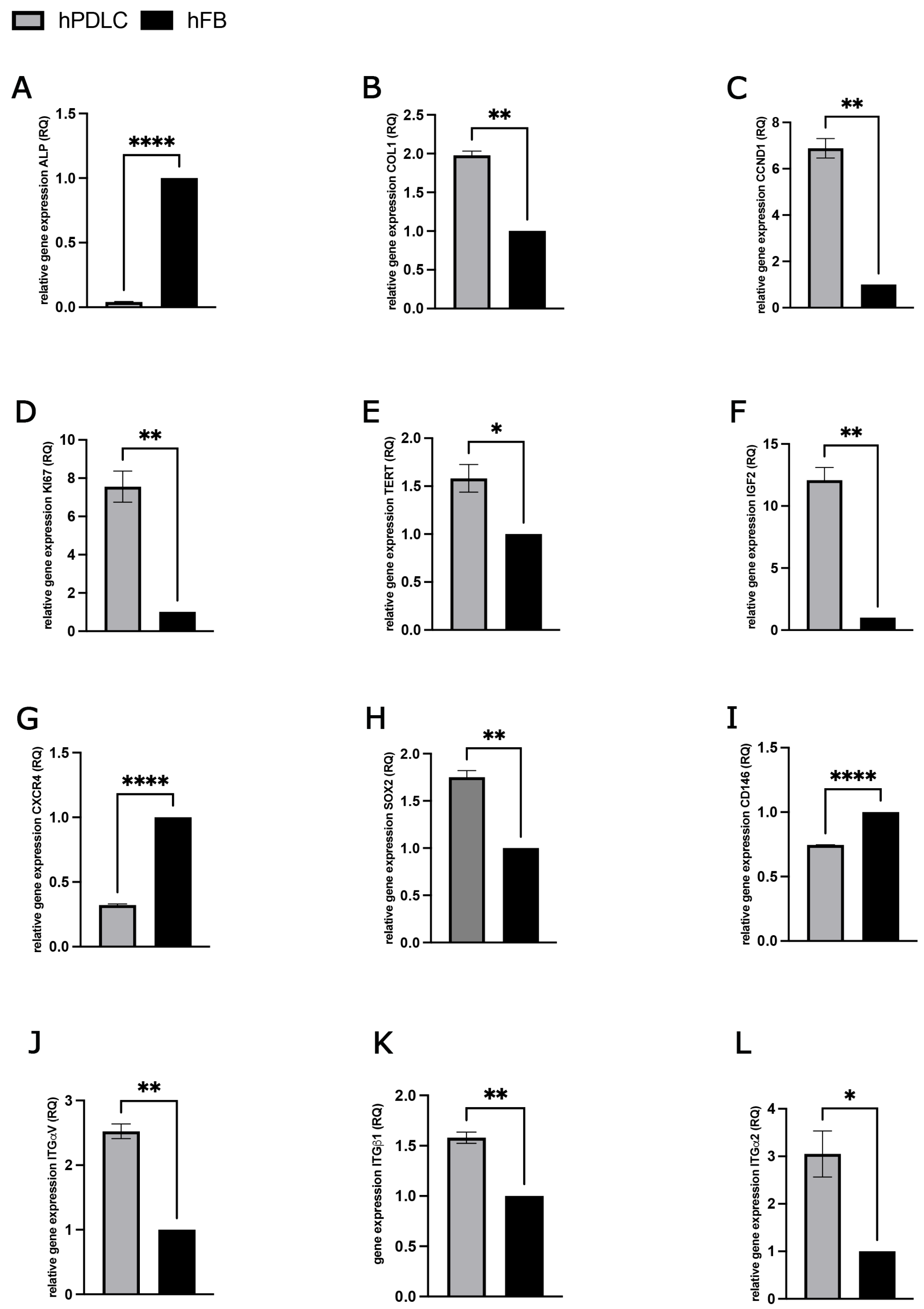 - Somerman, M.J.; Archer, S.Y.; Imm, G.R.; Foster, R.A. A Comparative Study of Human Periodontal Ligament Cells and Gingival Fibroblasts in vitro. J. Dent. Res. 1988, 67, 66–70. [Google Scholar] [CrossRef] [PubMed]