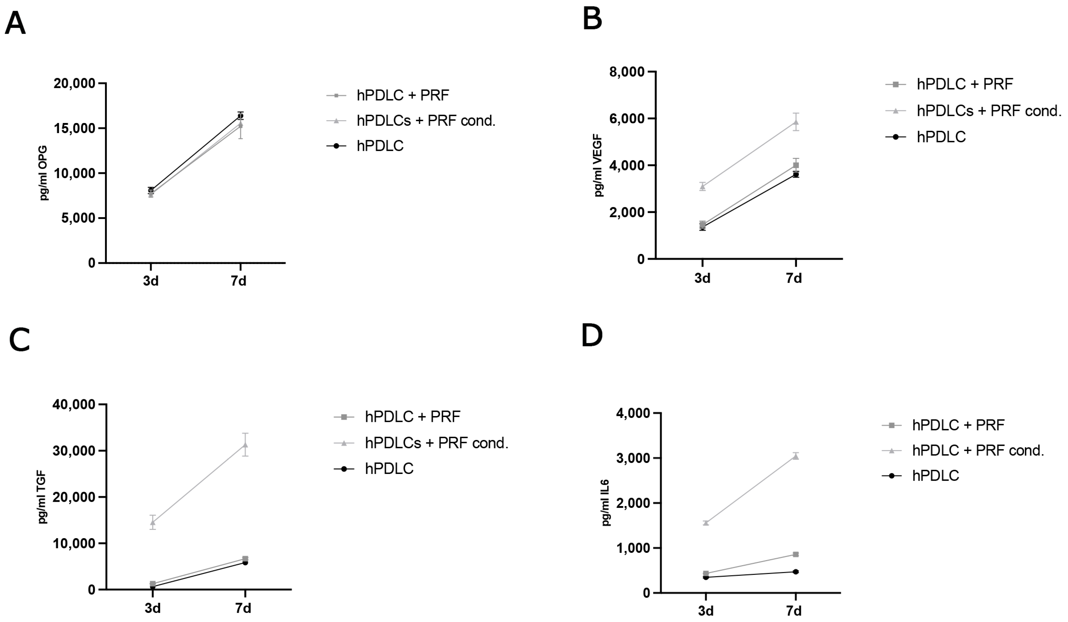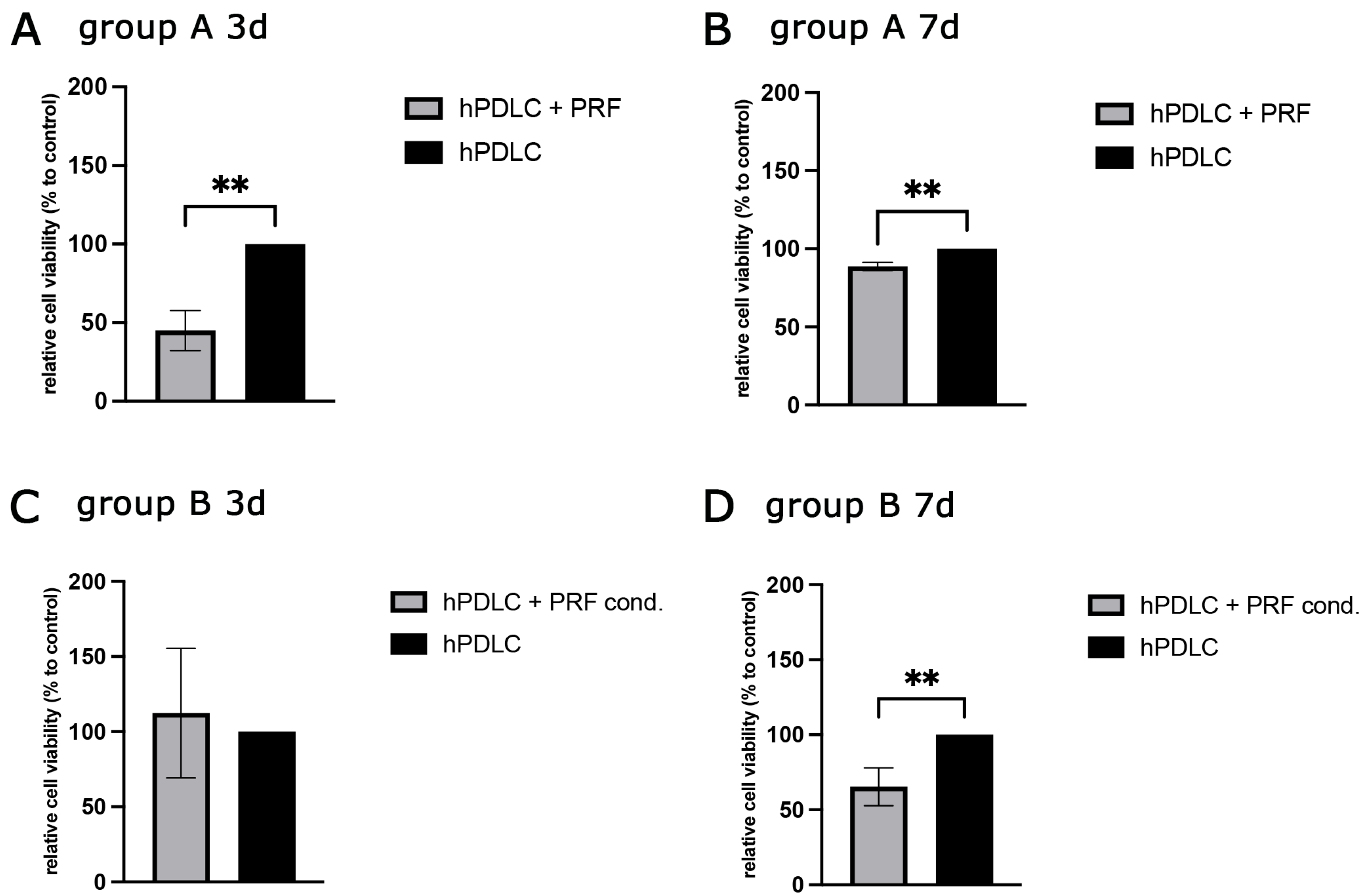 2.2.1. PRF-Mediated Effect on hPDLCs Cell Viability