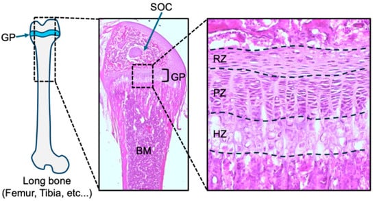 2.1. Characteristics of the Three Zones in Postnatal Growth Plate