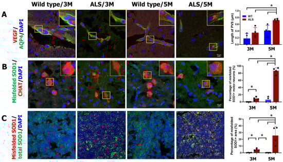 2.3. Increased Cerebral PVS Width and Misfolded Protein in ALS Mice