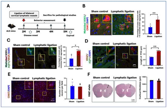 2.4. Pathology and Behaviors After Ligation of Cervical Lymphatic Vessels in ALS Mice