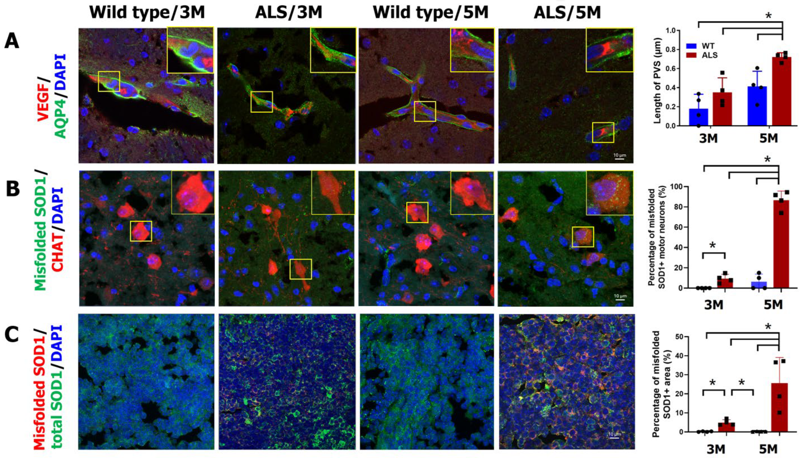 2.3. Increased Cerebral PVS Width and Misfolded Protein in ALS Mice