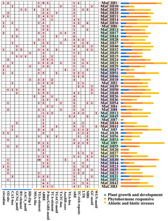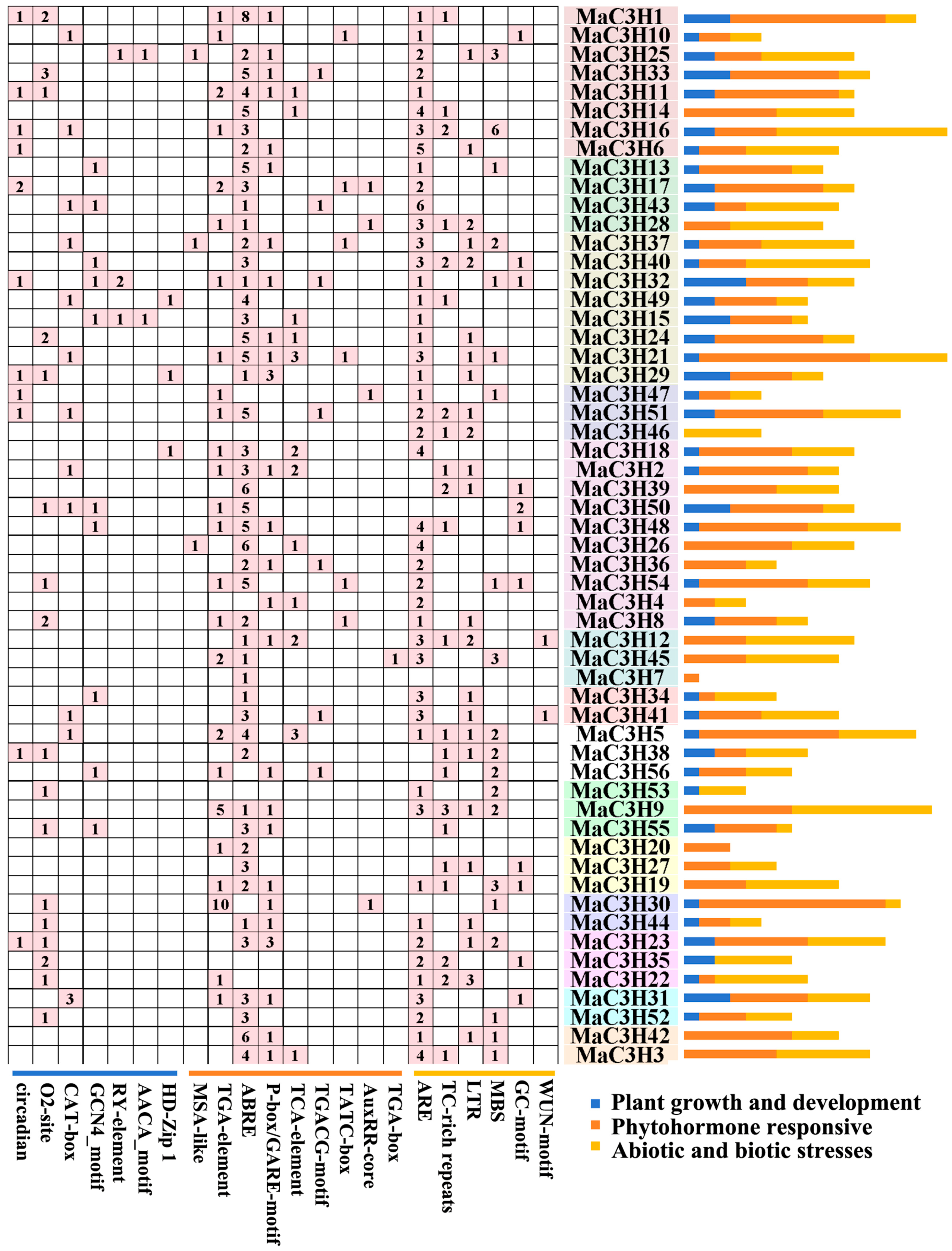 2.5. Cis-Acting Element Analysis of MaC3Hs