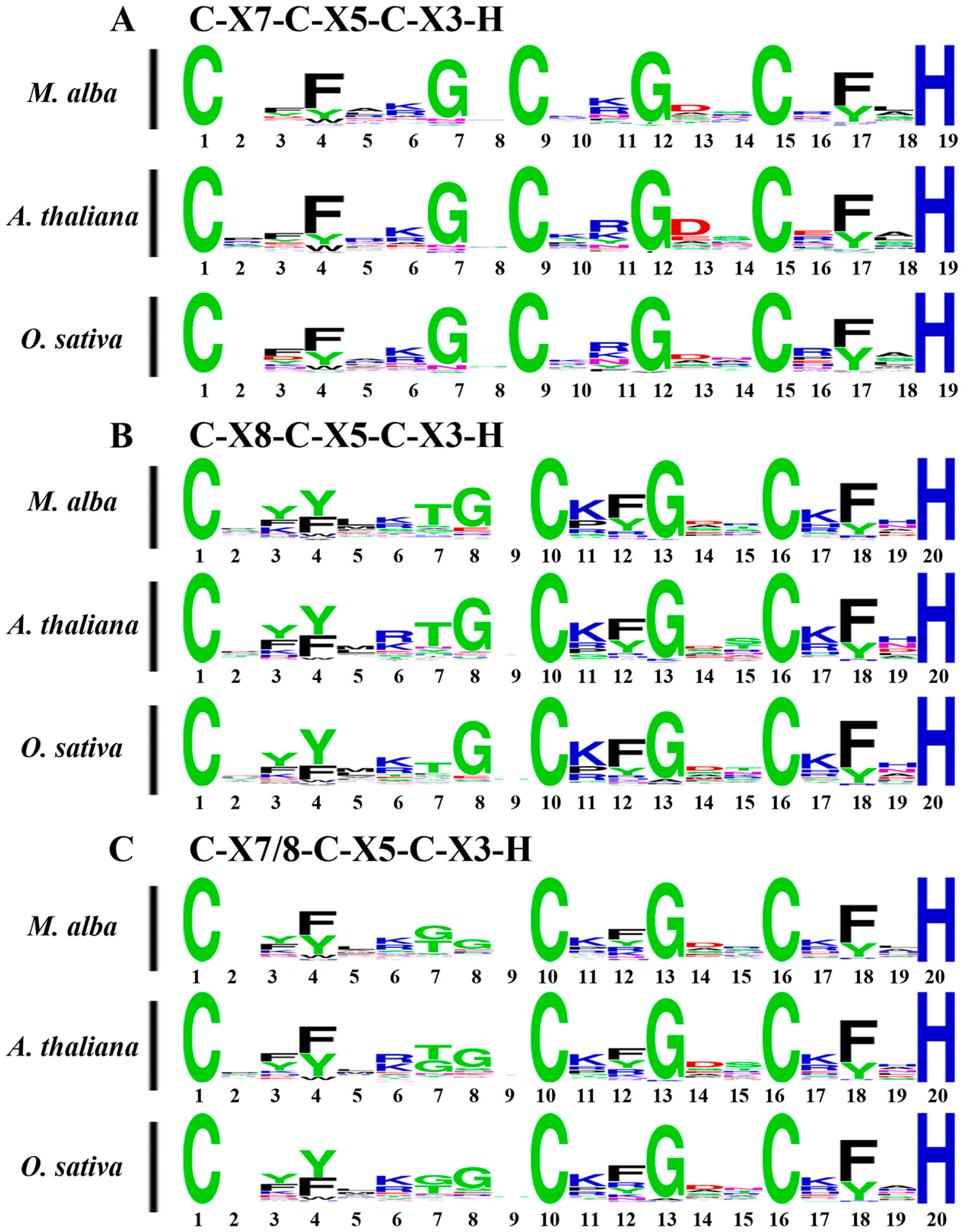 APA StyleChen, F., Yu, J., Han, Z.-H., & Deng, Y.-J. (2025). Identification and Expression Analysis of CCCH Zinc Finger Proteins in Mulberry (Morus alba). International Journal of Molecular Sciences, 26(19), 9490. https://doi.org/10.3390/ijms26199490