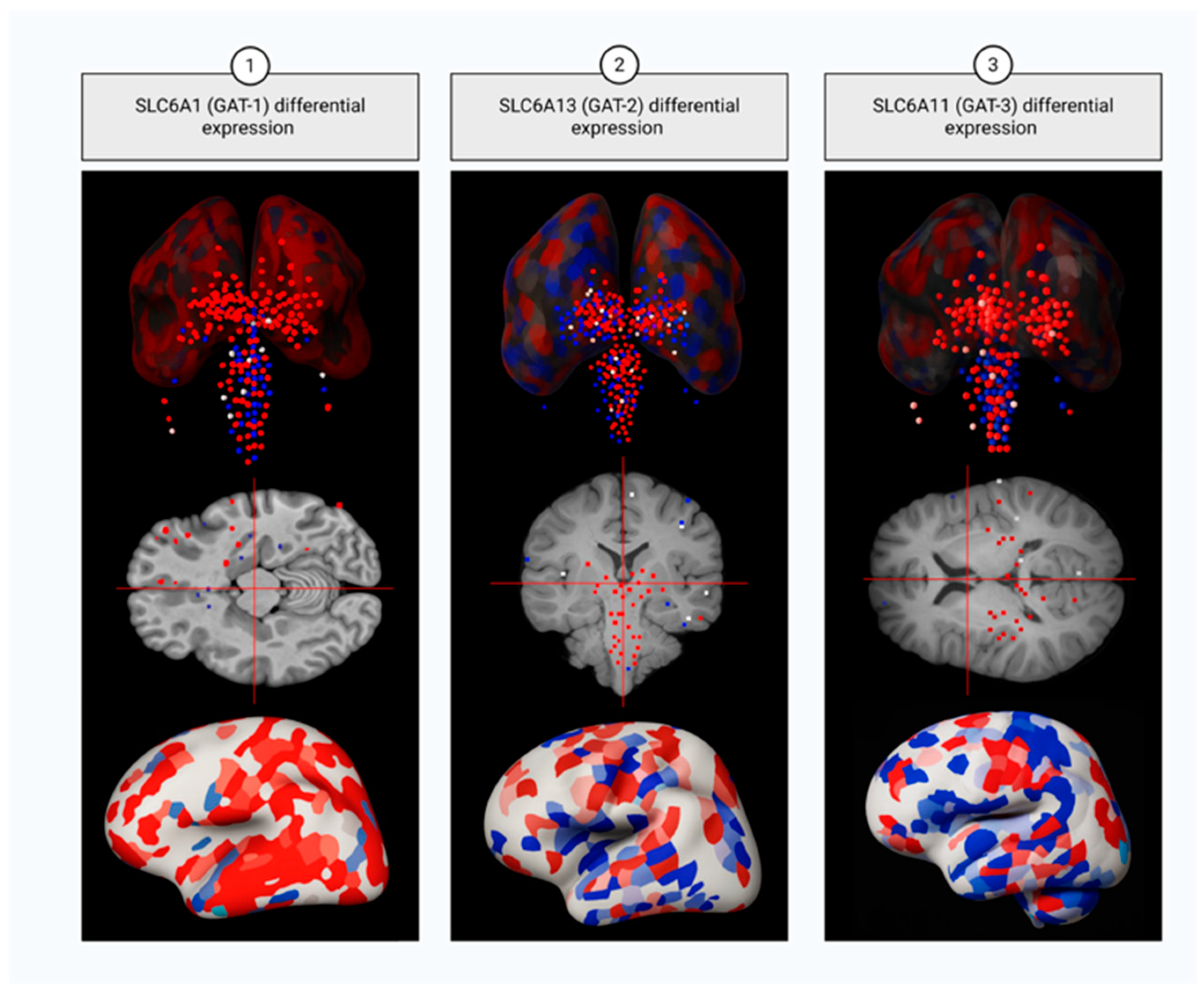 - Yadav, R.; Han, G.W.; Gati, C. Molecular Basis of Human GABA Transporter 3 Inhibition. Nat. Commun. 2025, 16, 3830. [Google Scholar] [CrossRef]