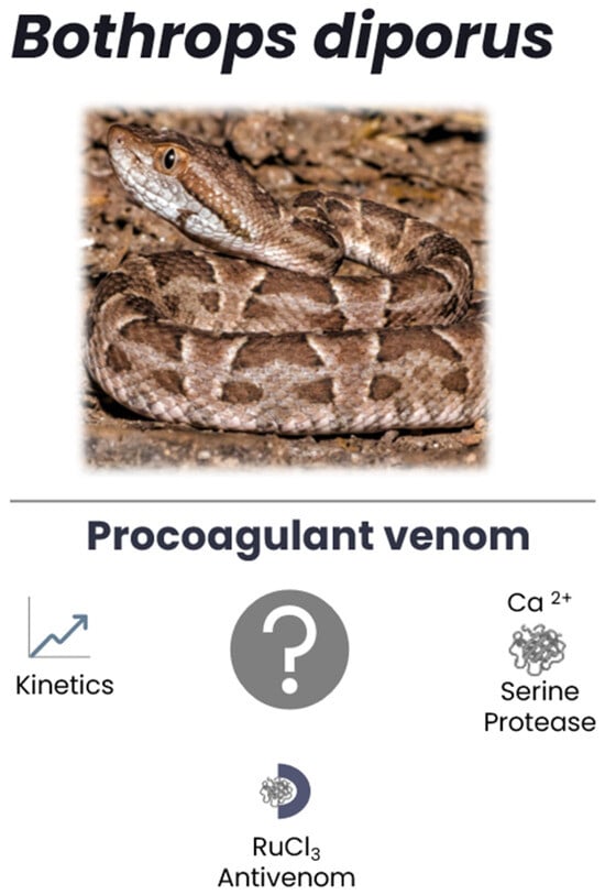 - Bourke, L.A.; Salazar-Valenzuela, D.; Mancuso, M.; Quirola, D.R.; Loaiza-Lange, A.; Zdenek, C.N.; Lewin, M.R.; Arbeláez-Ortiz, E.; Fry, B.G. Venom versatility: Dynamic anticoagulant and procoagulant variations between and within Bothrocophias (toad-head) and basal Bothrops (lance-head) pit vipers. Biochimie 2025, 237, 1–15. [Google Scholar] [CrossRef]