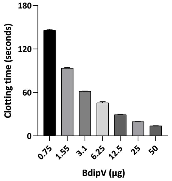 2.2. Coagulant and Serine Protease Enzymatic Activities of BdipV on Citrated Human Plasma and a Chromogenic Substrate Cleaved by Serine Proteases