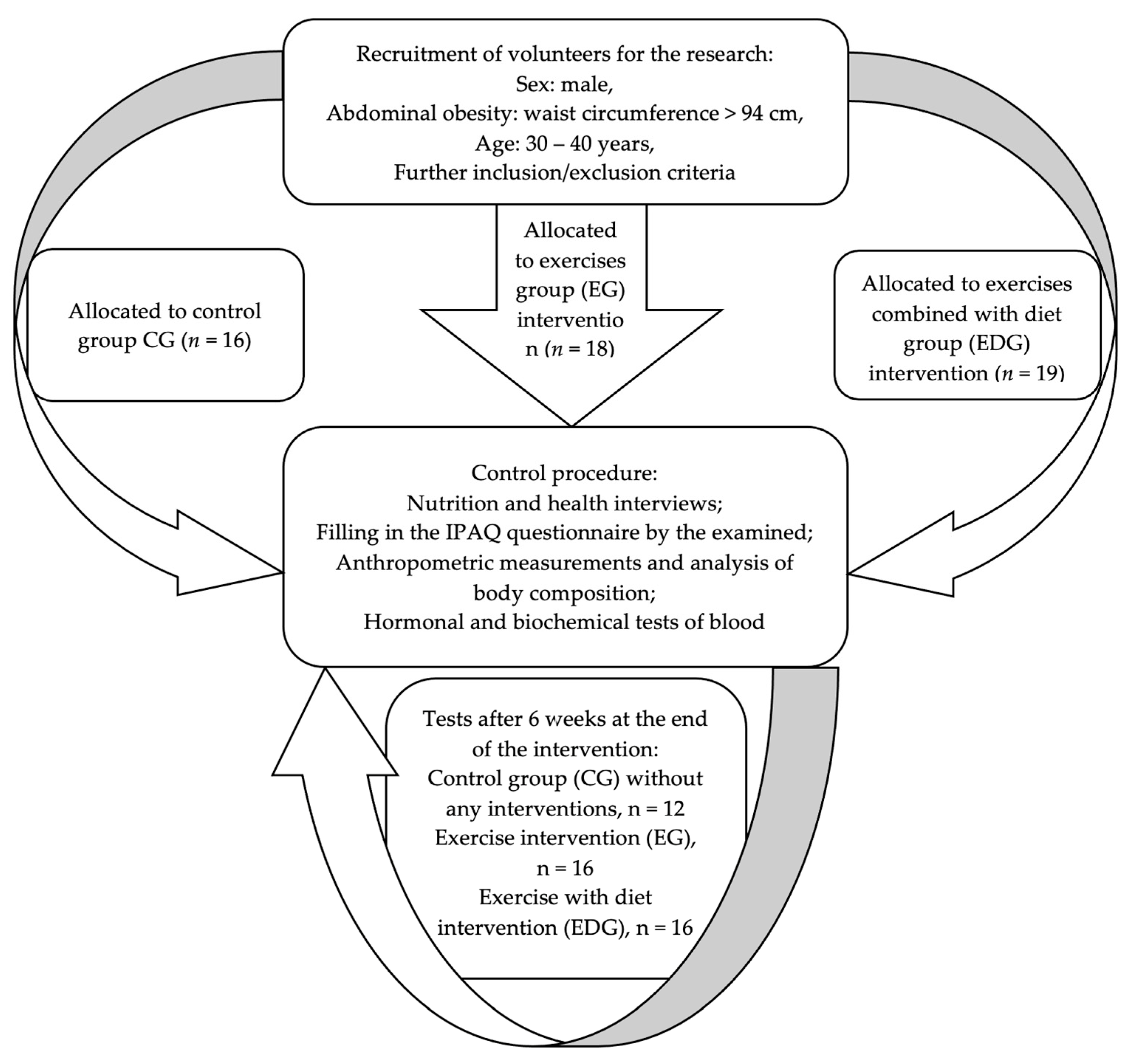 - Ross, R.; Dagnone, D.; Jones, P.J.H.; Smith, H.; Paddags, A.; Hudson, R.; Janssen, I. Reduction in obesity and related comorbid conditions after diet-induced weight loss or exercise-induced weight loss in men: A randomized, controlled trial. Ann. Intern. Med. 2000, 133, 92–103. [Google Scholar] [CrossRef]