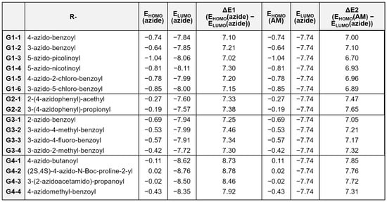 ΔE2 = EHOMO (AM) − ELUMO (azide)