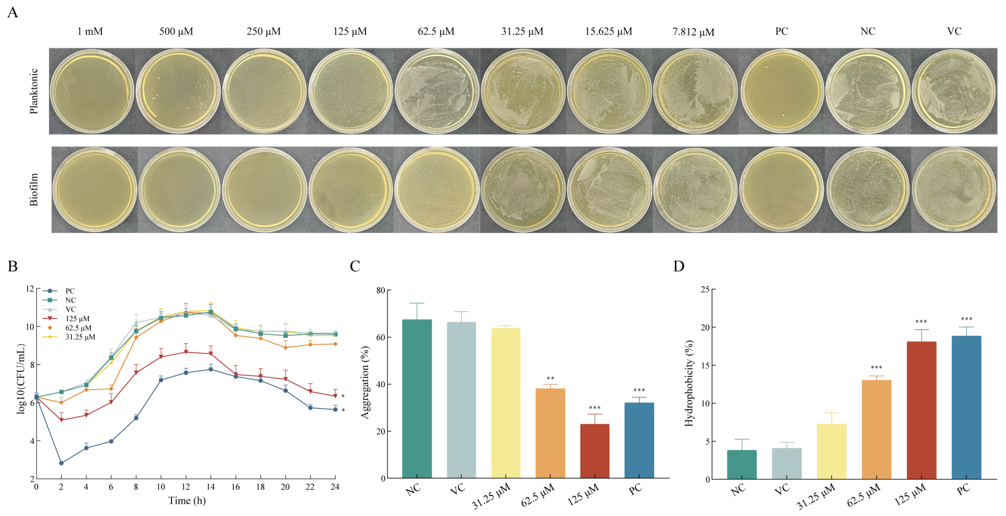 2.6. RT-qPCR Confirms Downregulation of Biofilm-Associated Genes