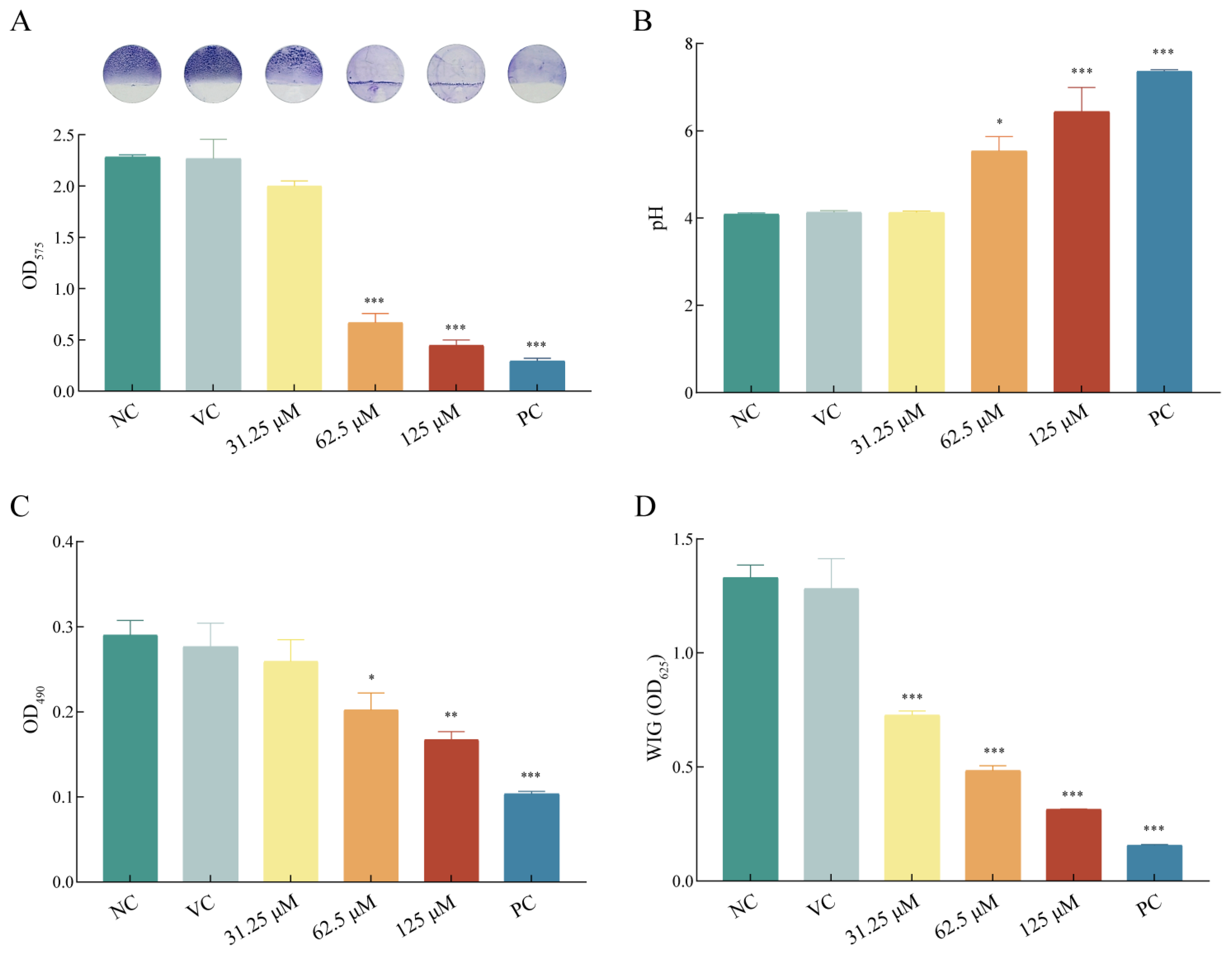 2.3. Asiatic Acid Suppressed Biofilm Formation of S. mutans