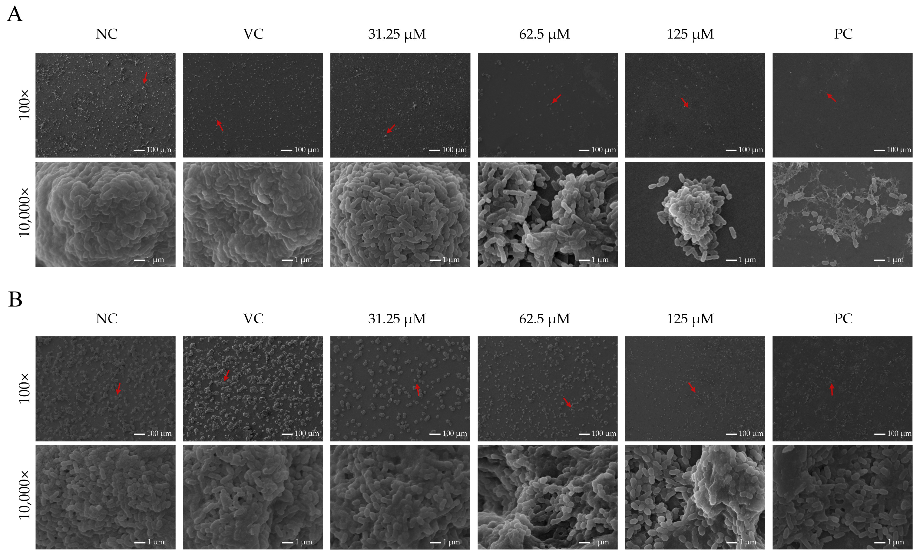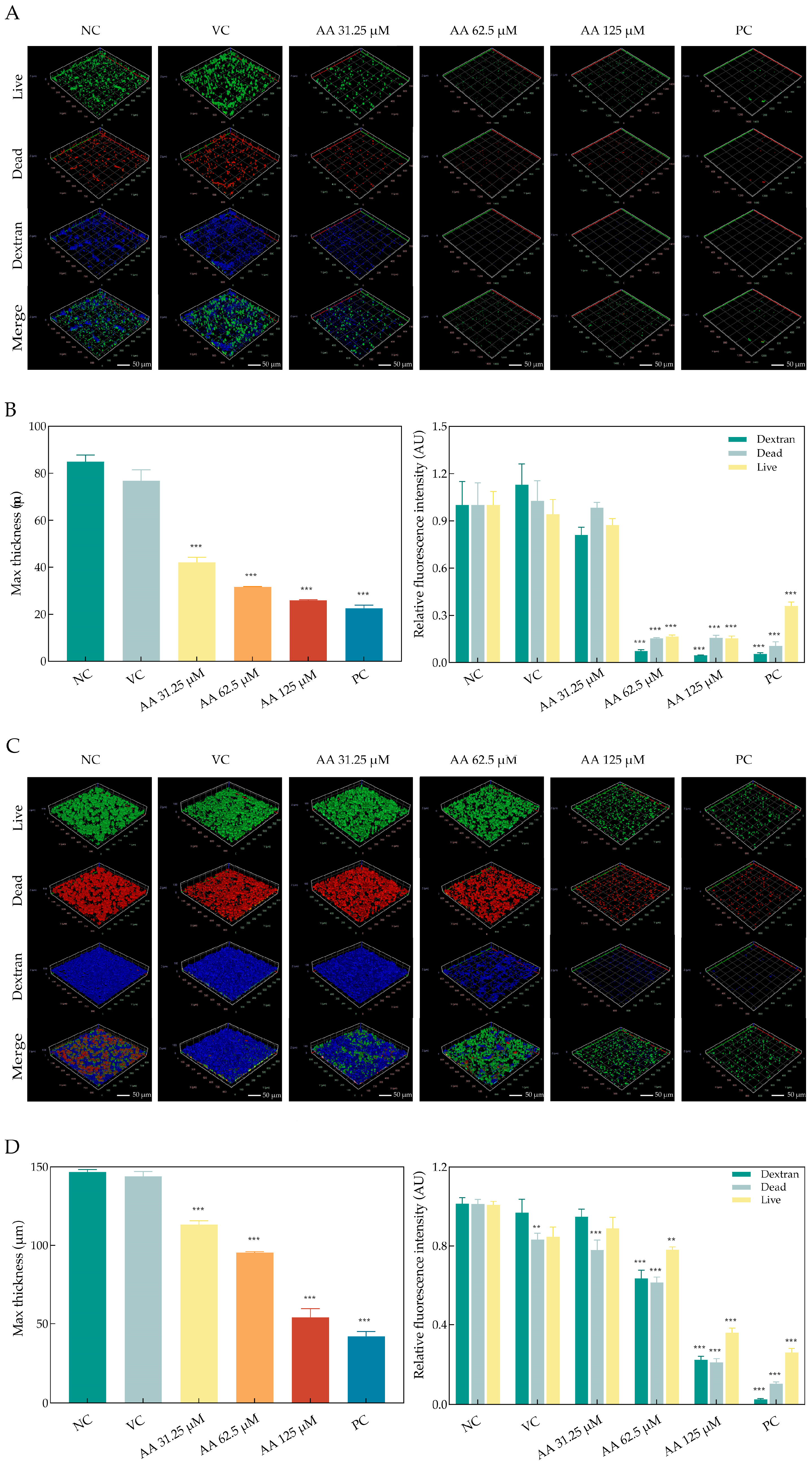 2.4. Asiatic Acid Altered Structural Morphology of S. mutans Biofilms