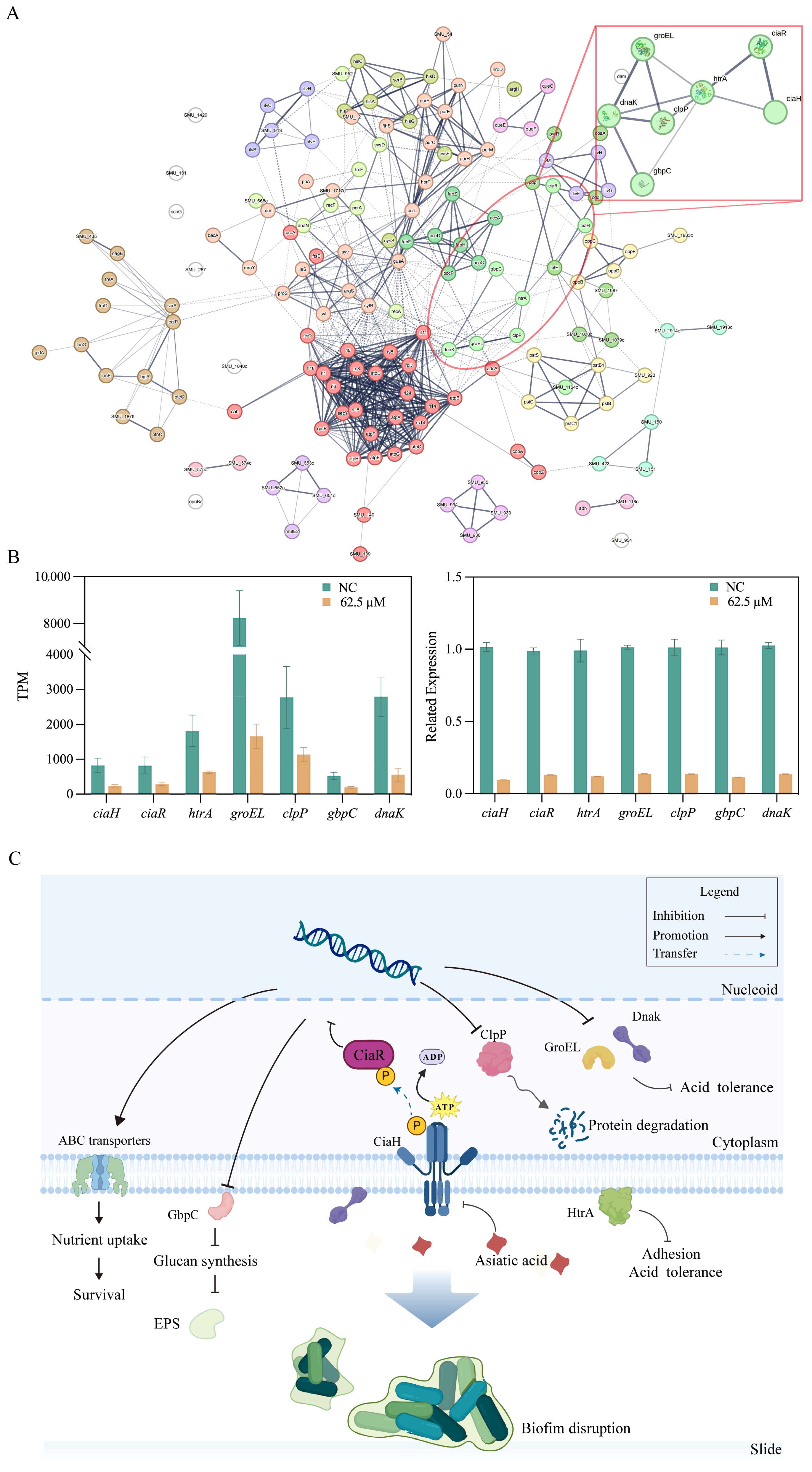 Shi Q, Li F, Peng Y, Sun Q, Zhao H, Lu F, Zhao H. Asiatic Acid Disrupts the Biofilm Virulence of Streptococcus mutans by Transcriptional Reprogramming of Quorum Sensing System. International Journal of Molecular Sciences. 2025; 26(19):9510. https://doi.org/10.3390/ijms26199510