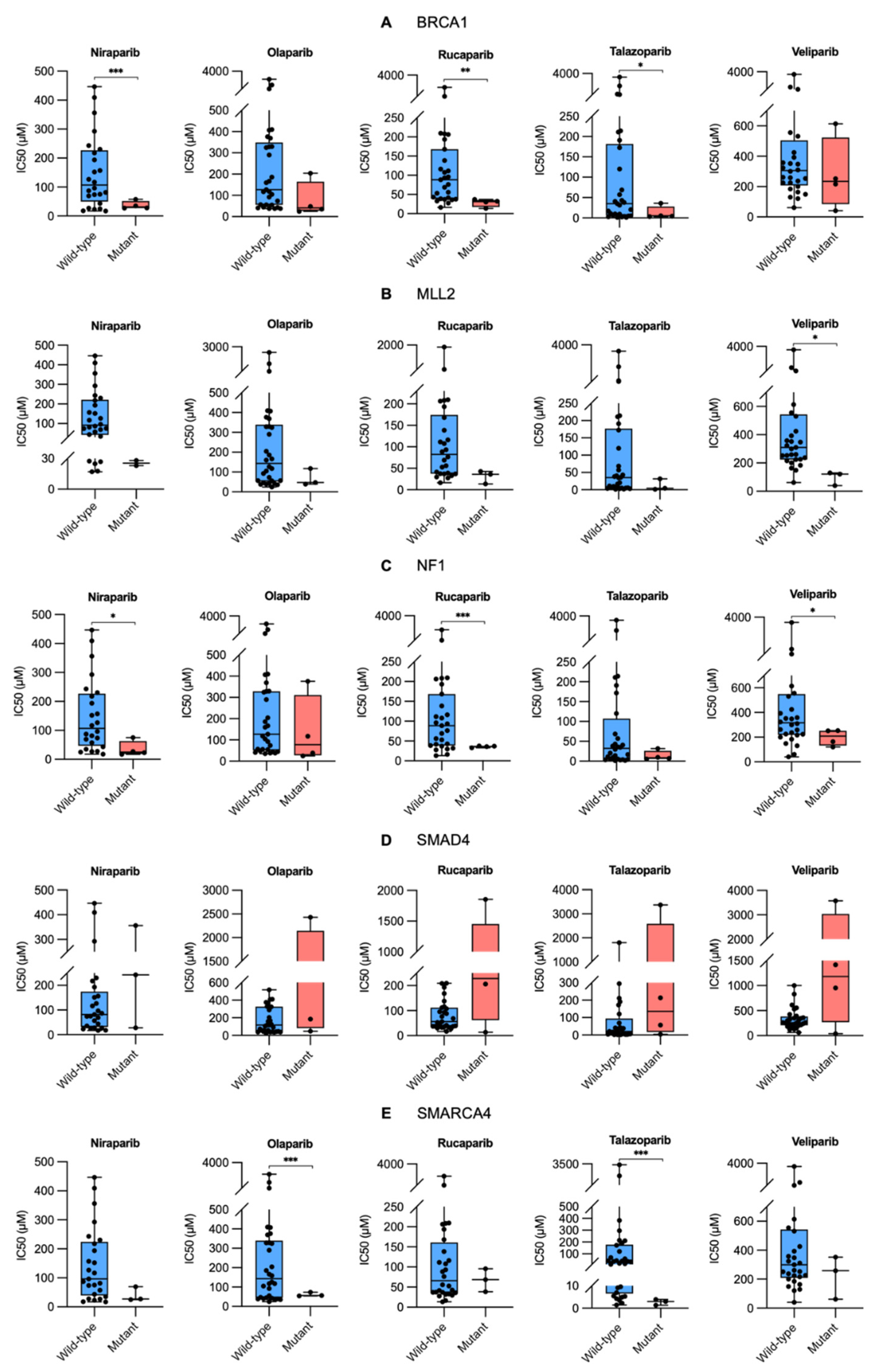 MLL2 | Niraparib | 26 | 141.4 ± 123.8 | 2 | 25.5 ± 3.5 |