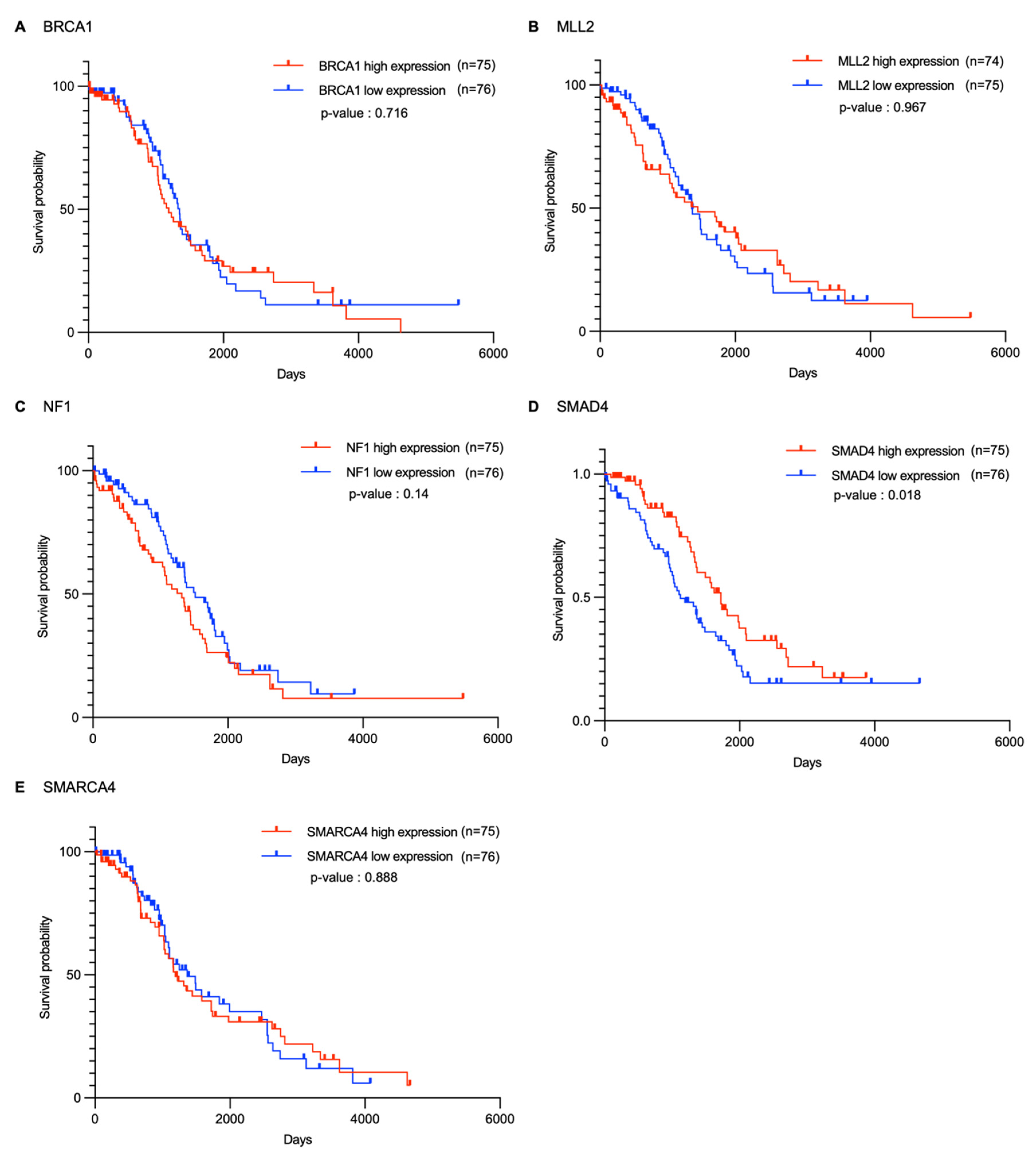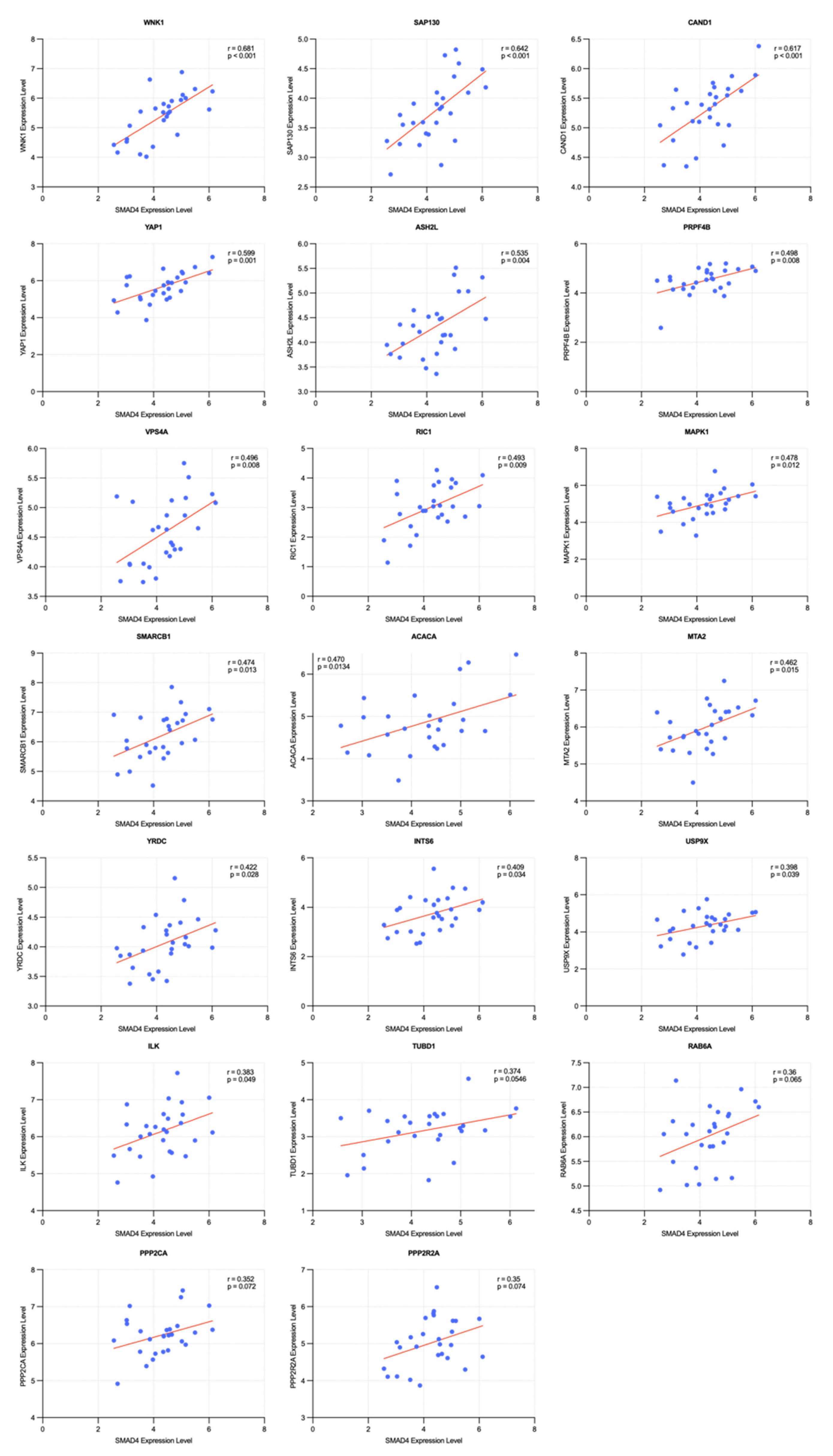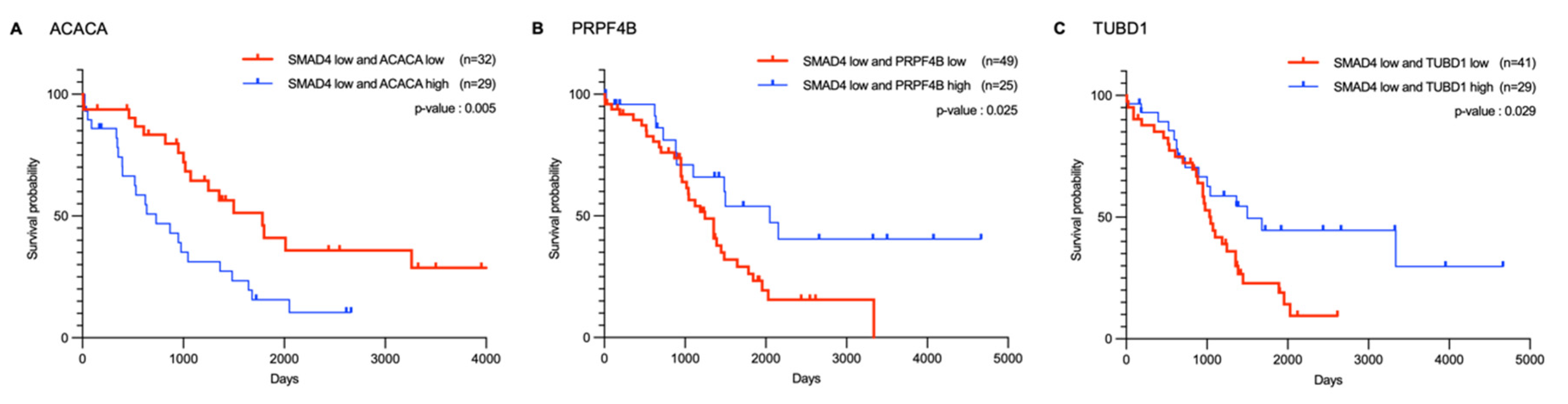 2.4. Correlation and Survival Analysis of SMAD4-Associated Genes