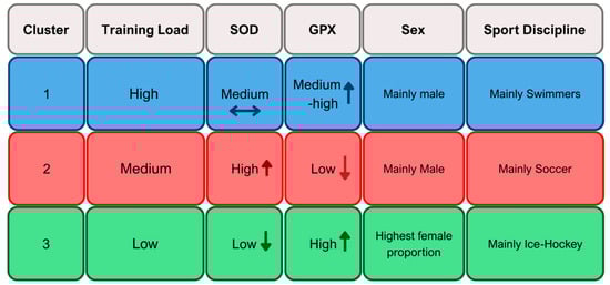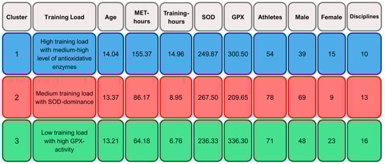 2.5. Cluster-Based Profiles of Training Load and Antioxidant Enzyme Activity