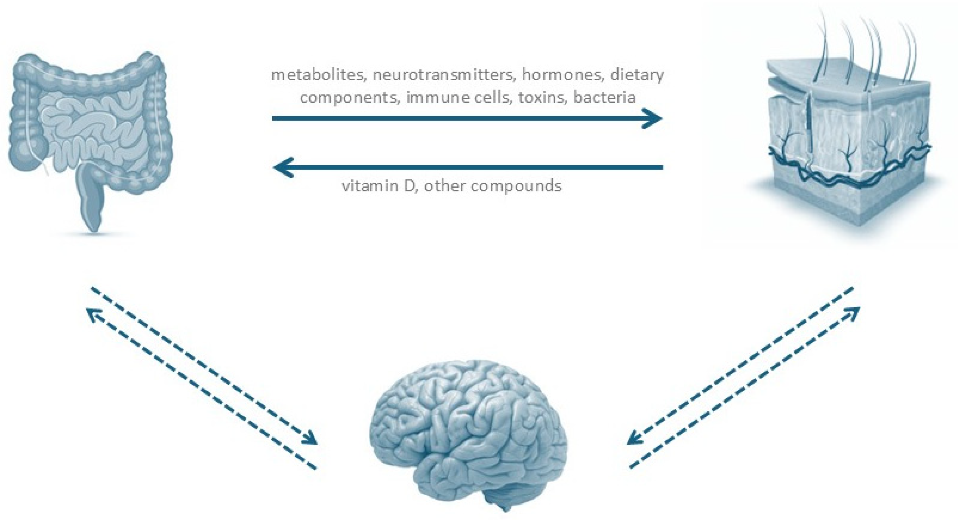 - O’Neill, C.A.; Monteleone, G.; McLaughlin, J.T.; Paus, R. The Gut-Skin Axis in Health and Disease: A Paradigm with Therapeutic Implications. BioEssays 2016, 38, 1167–1176. [Google Scholar] [CrossRef] [PubMed]